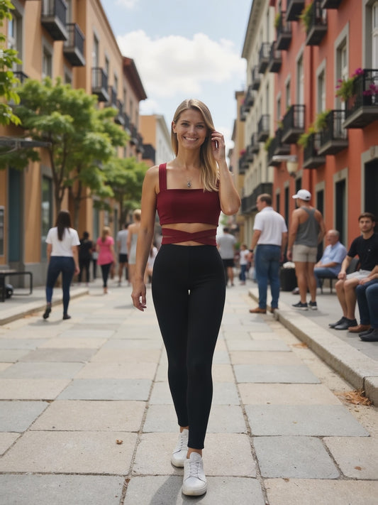 Berrylush BASICS Women Solid Maroon Sweetheart Neck Sleeveless Backless Tie-Up Waist Knitted Crop Top