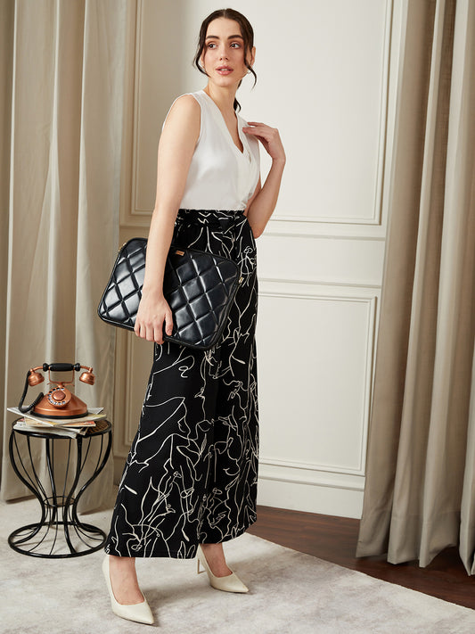 Berrylush Women Black & White Houndstooth Printed Polyester Two-Handle Zipper-Up Laptop Bag