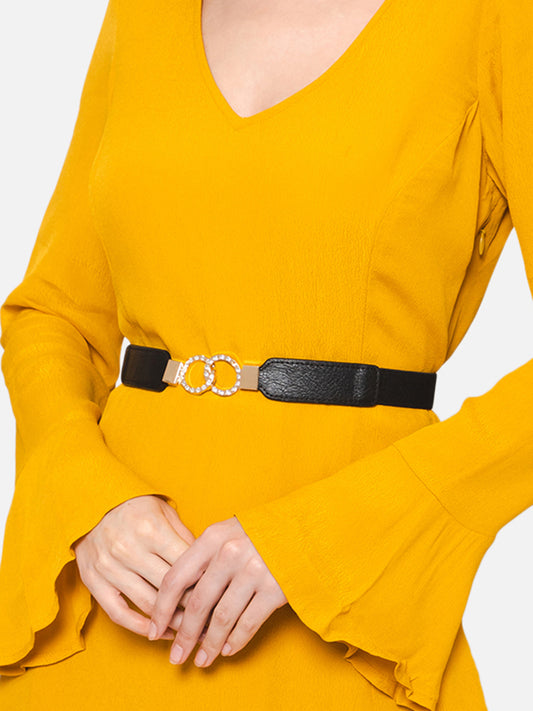 Berrylush Women Black Elastic Strap Golden Buckle Belt