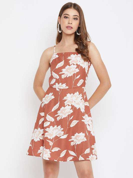 Berrylush Women White Floral Print Shoulder Straps Mini Dress