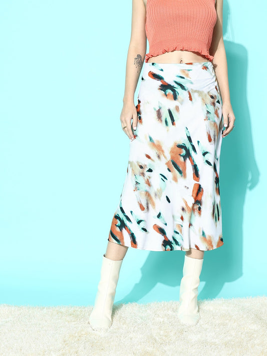 Berrylush Women Red & White Floral Printed High-Rise Elastic Waist Slip-On Straight Hem Pencil Mini Skirt