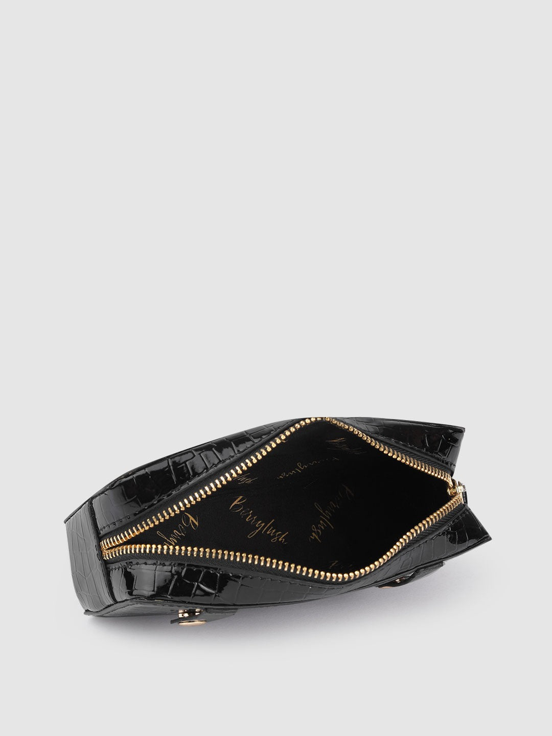 Berrylush Women Black Croc Textured Pattern PU Detachable Sling Strap Structured Small Waist Pouch