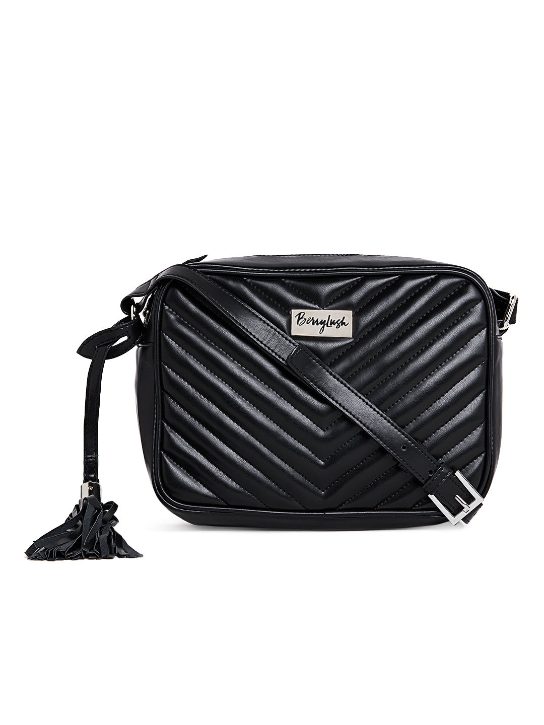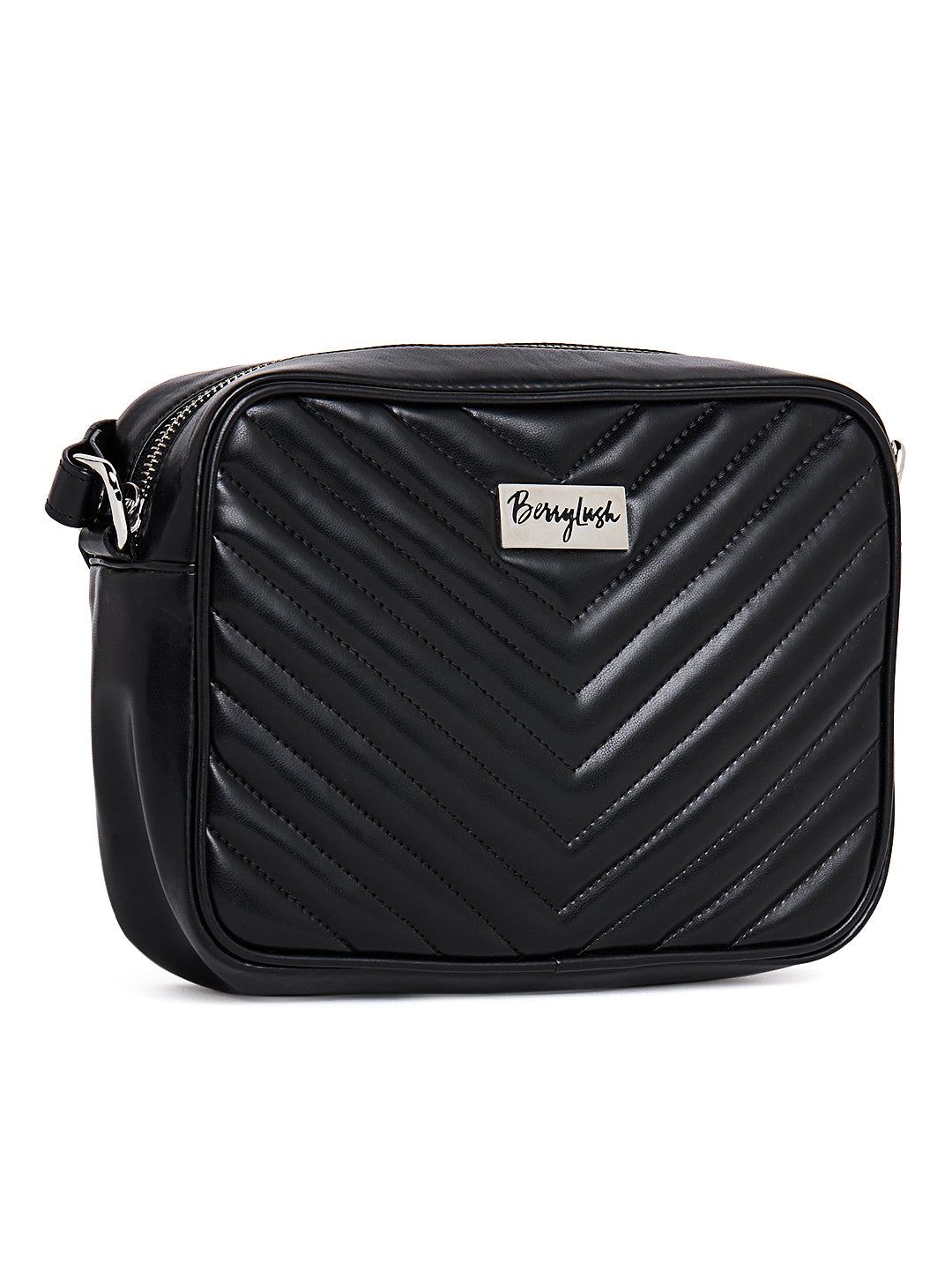 Berrylush Women Solid Black Detachable Sling Strap PU Quilted Smart Casual Regular Sling Bag