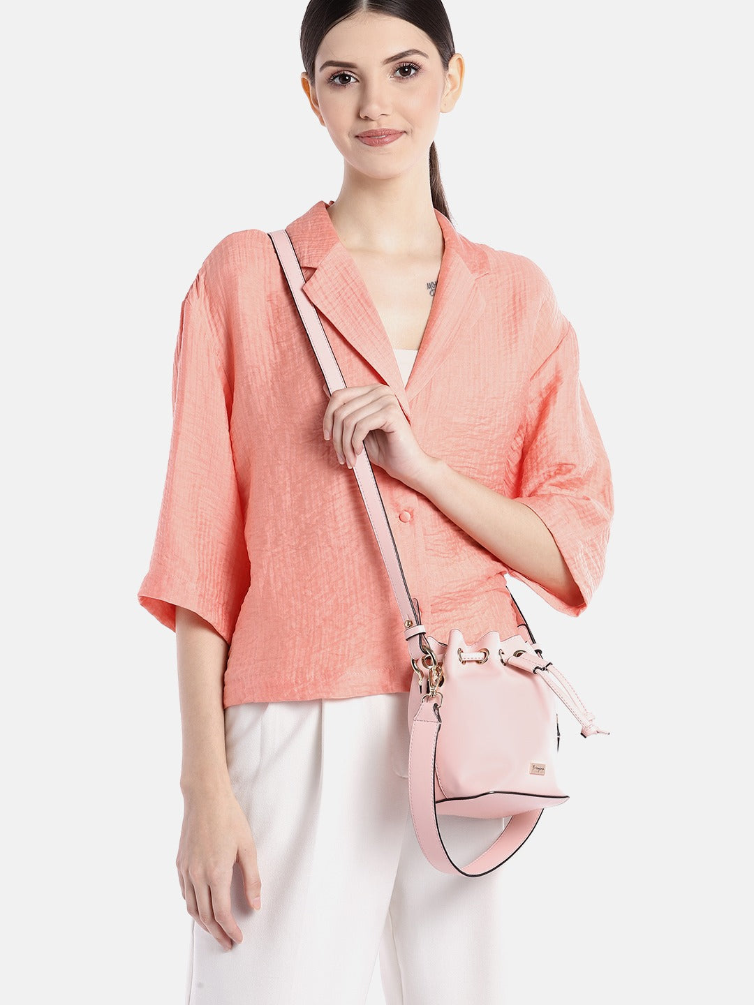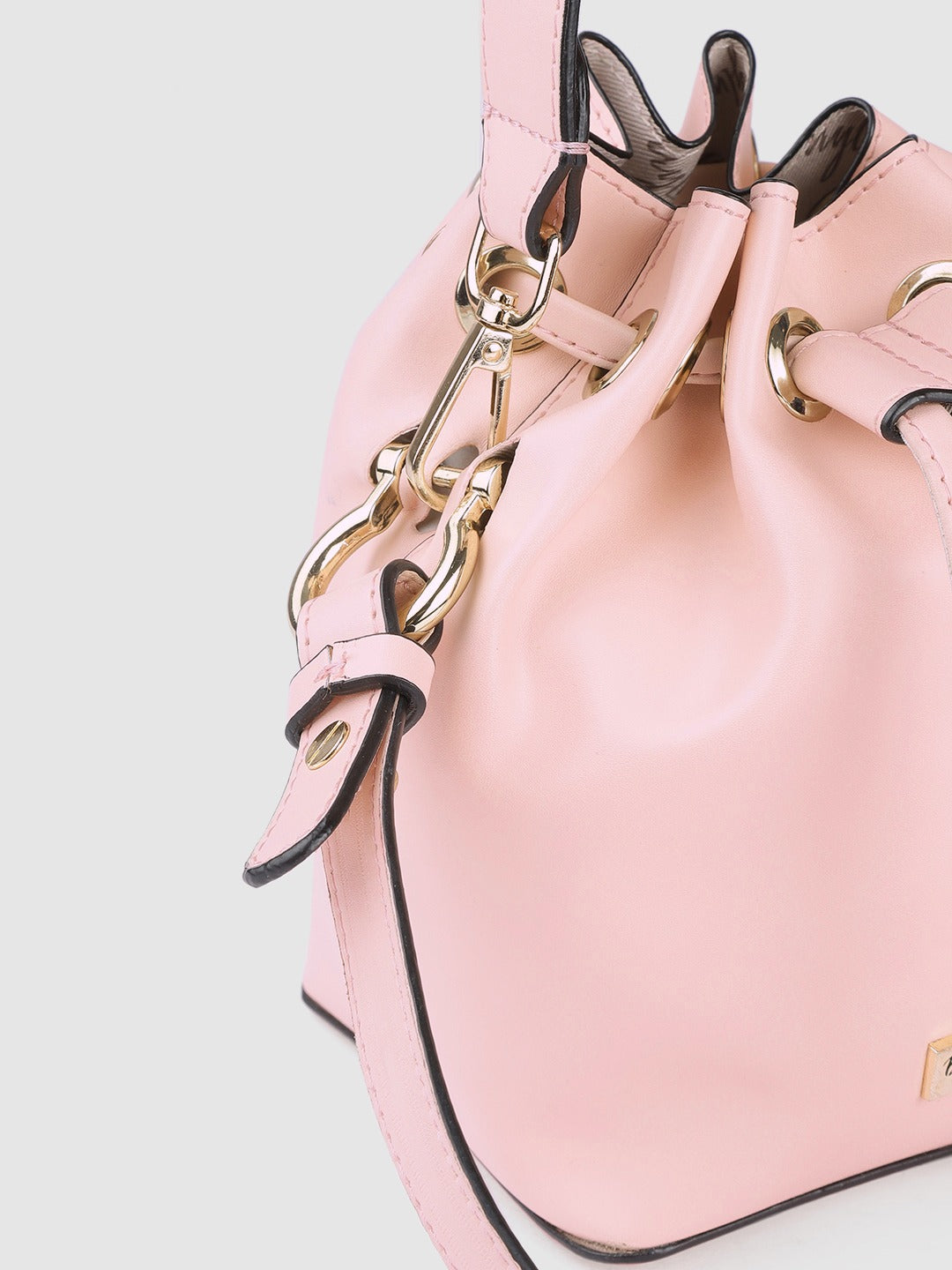 Berrylush Women Solid Pink One Handle PU Detachable Sling Strap Bucket Shoulder Bag