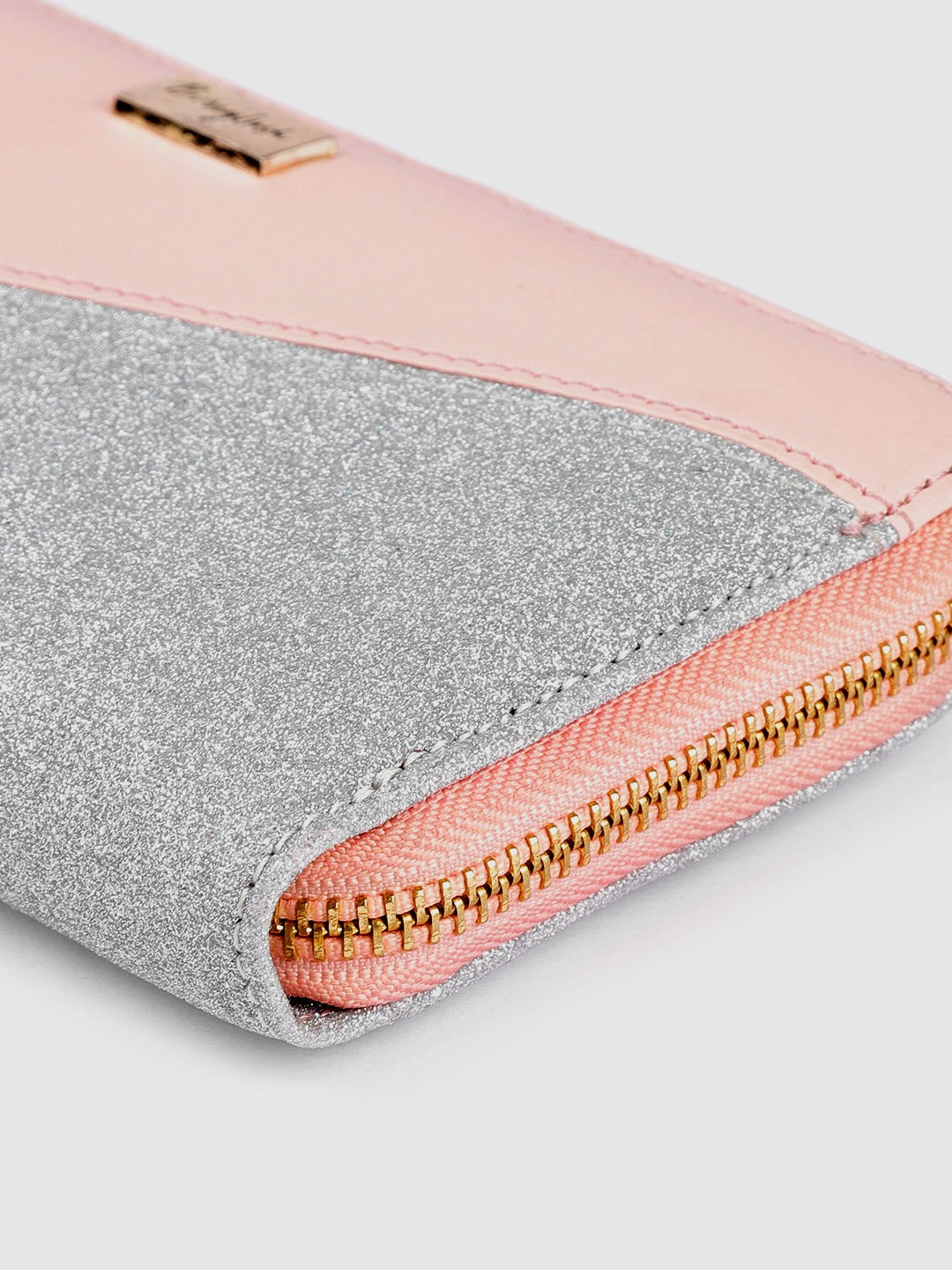 - Pink and silver colour-blocked pattern gives this wallet a stylish and eye-catching design
