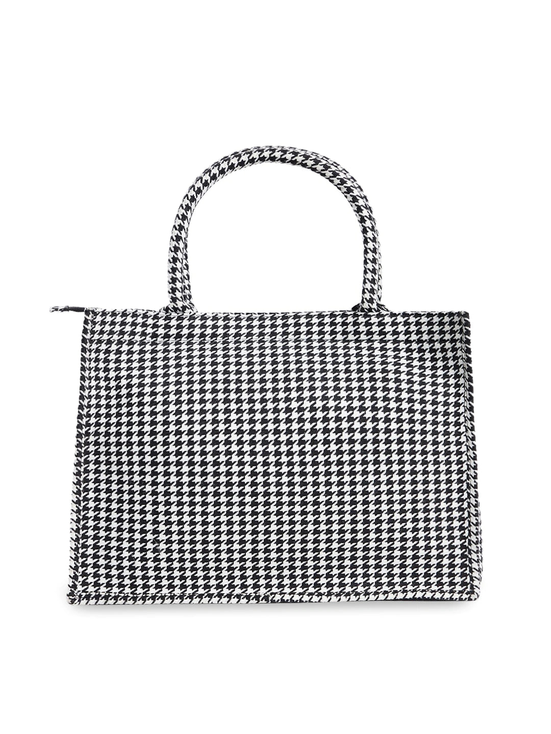 Berrylush Women Black & White Checked Pattern Cotton Structured Regular Handheld Bag
