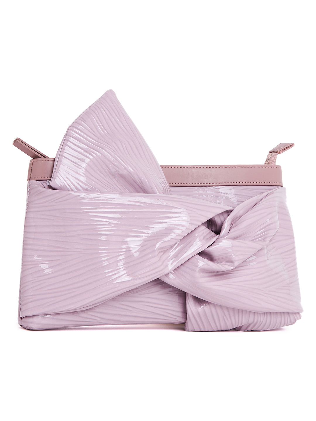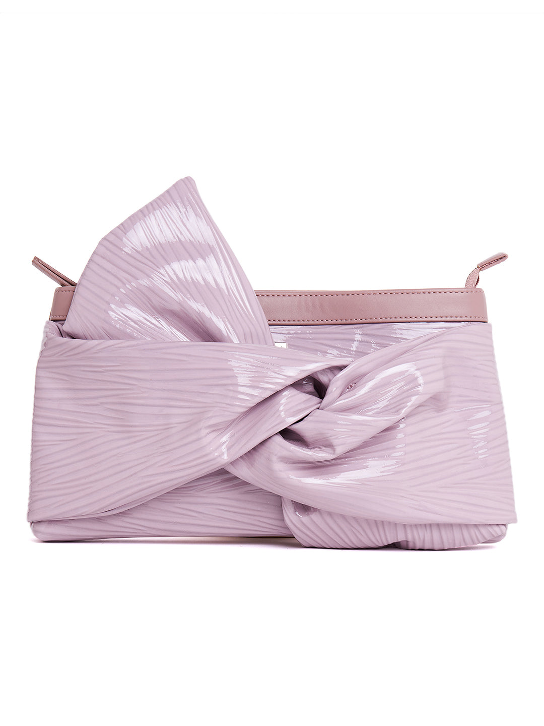 Berrylush Women Textured Purple Front Bow PU Smart Party Wear Small Handheld Bag