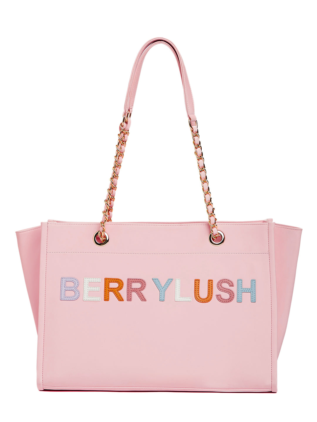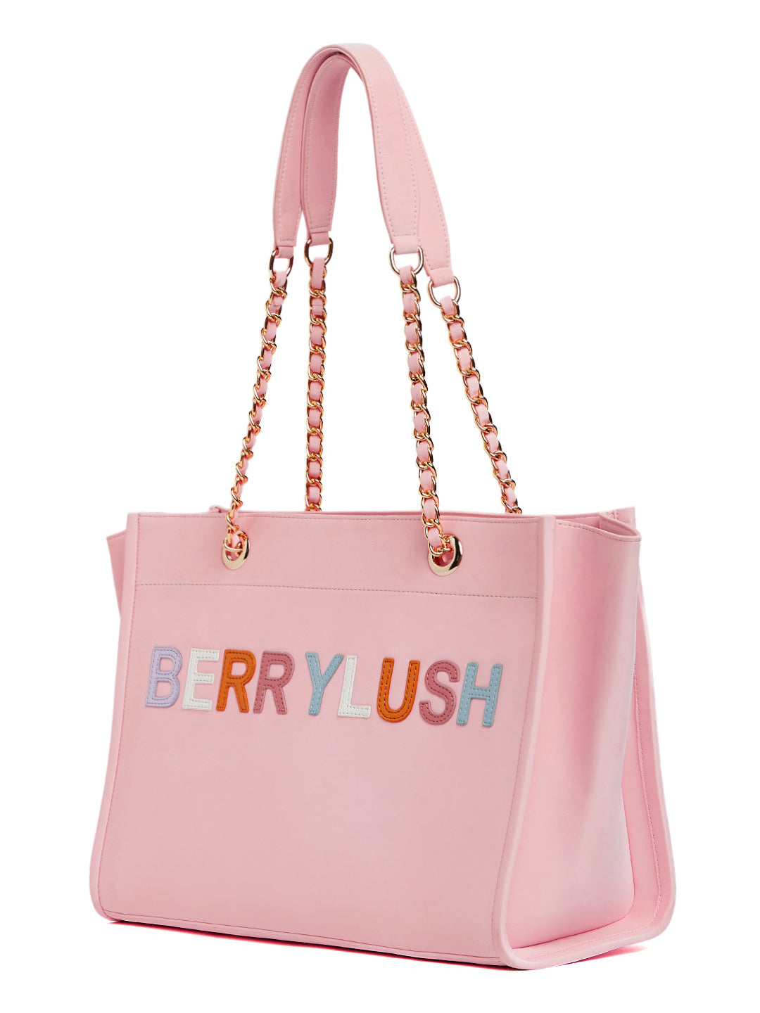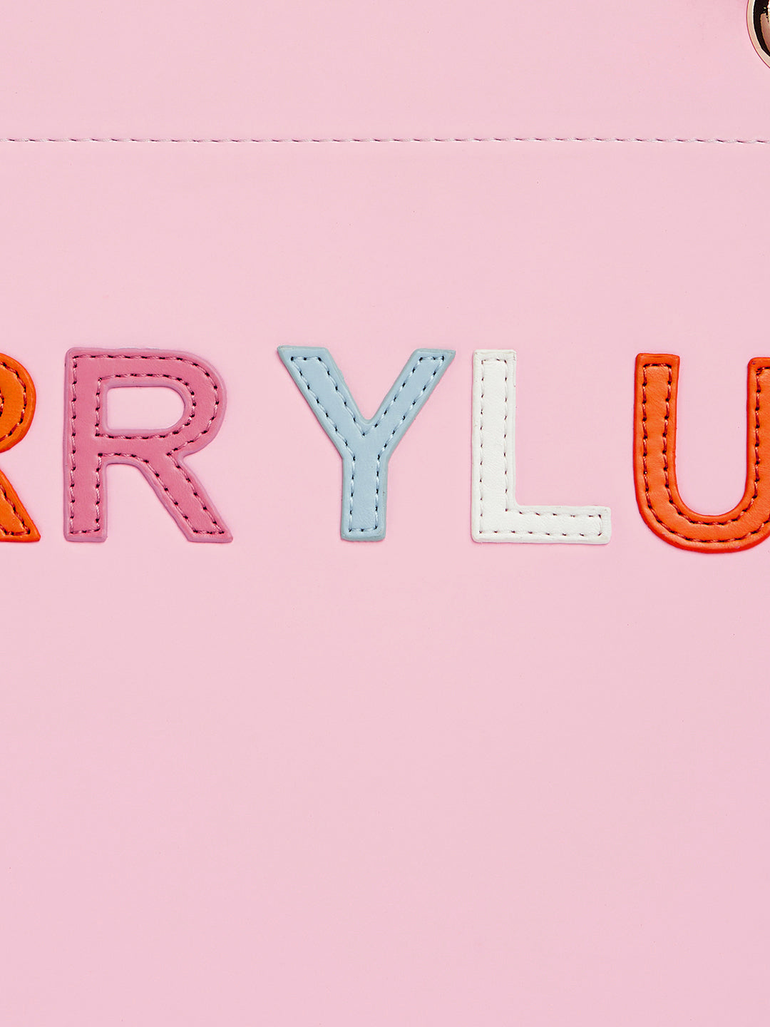 Berrylush Women Pink Typography PU Mobile Pouch Embellished Oversized Tote Bag