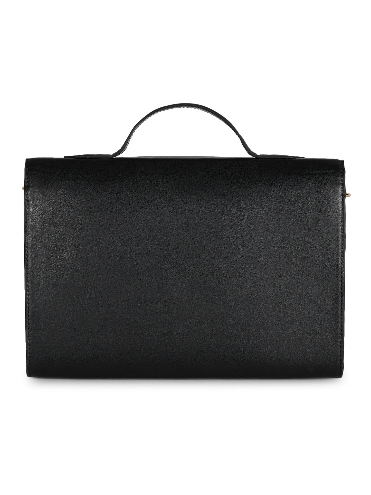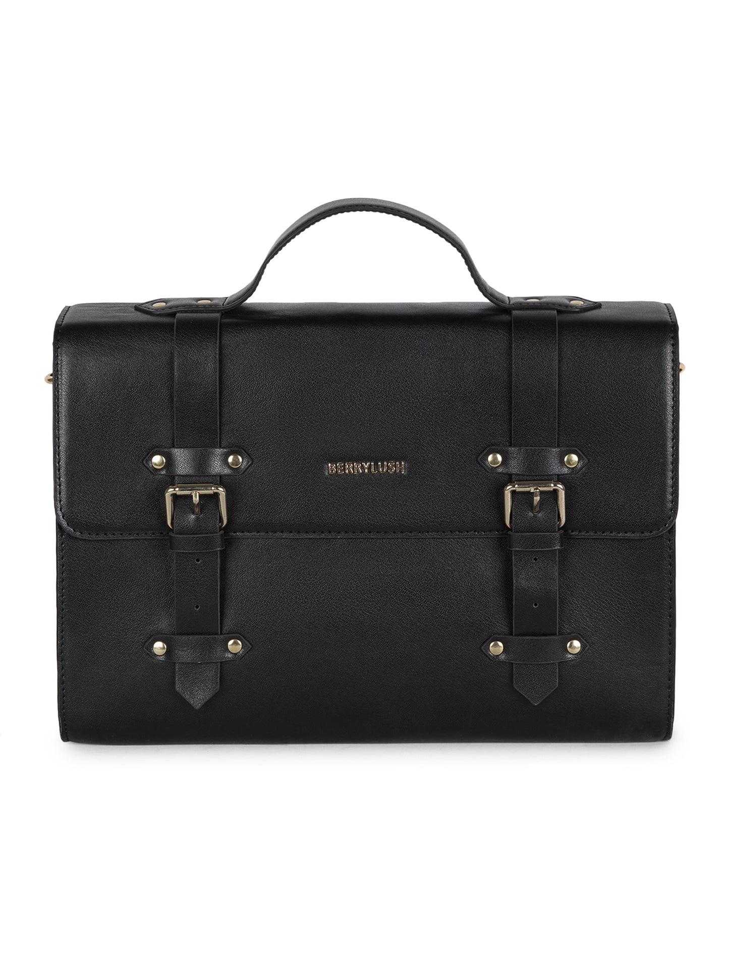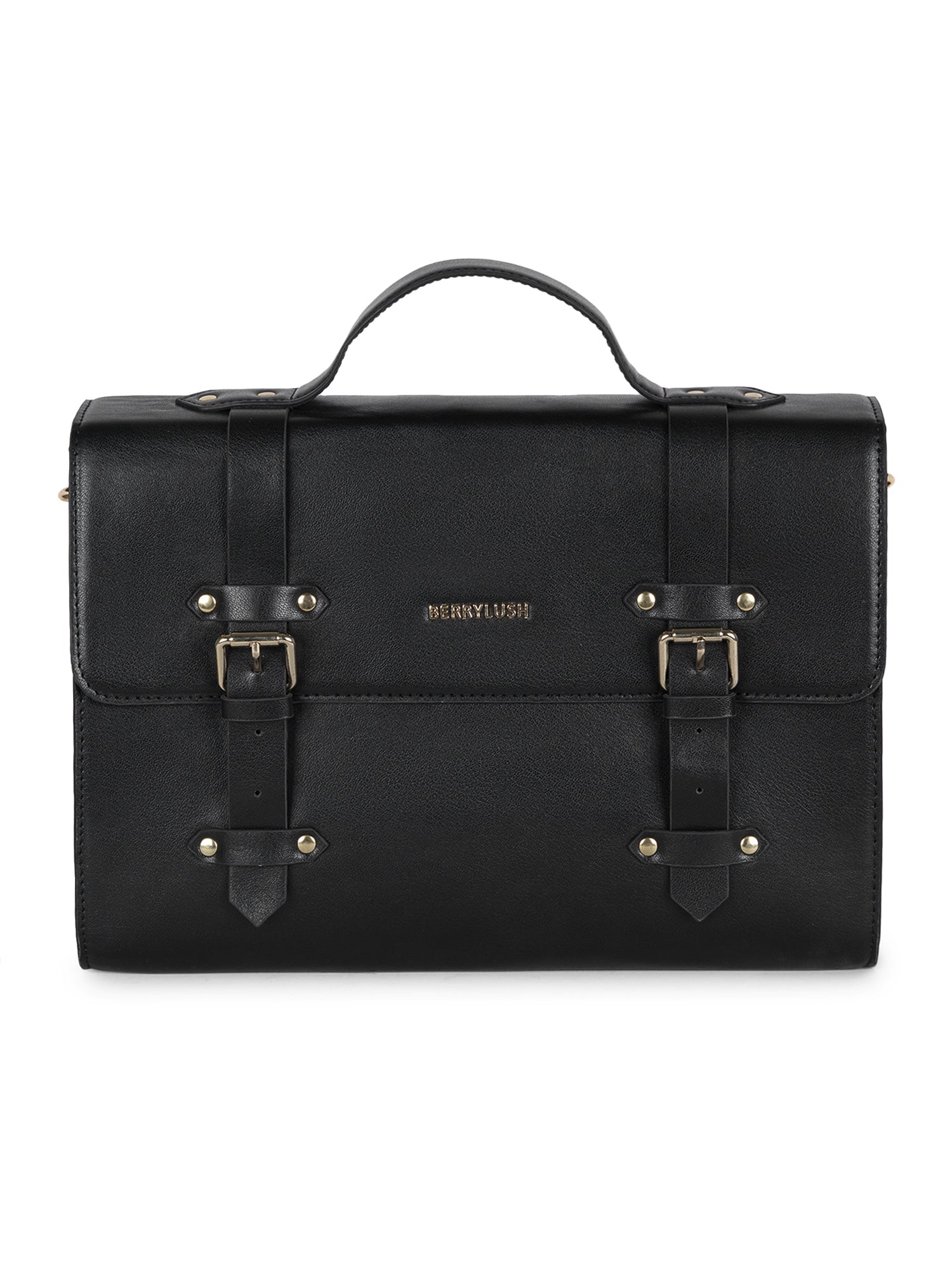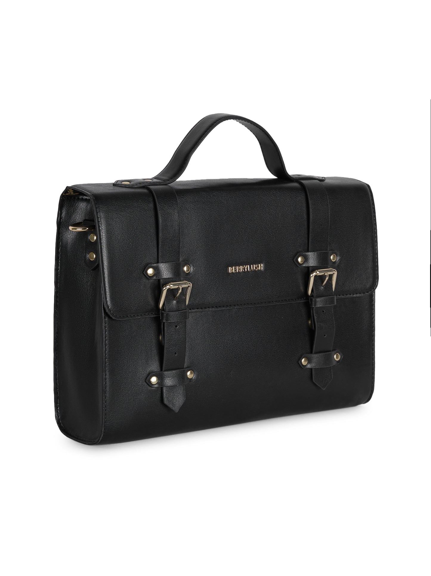 Berrylush Women Solid Black Synthetic Leather Detachable Sling Strap Buckle-Up Laptop Bag