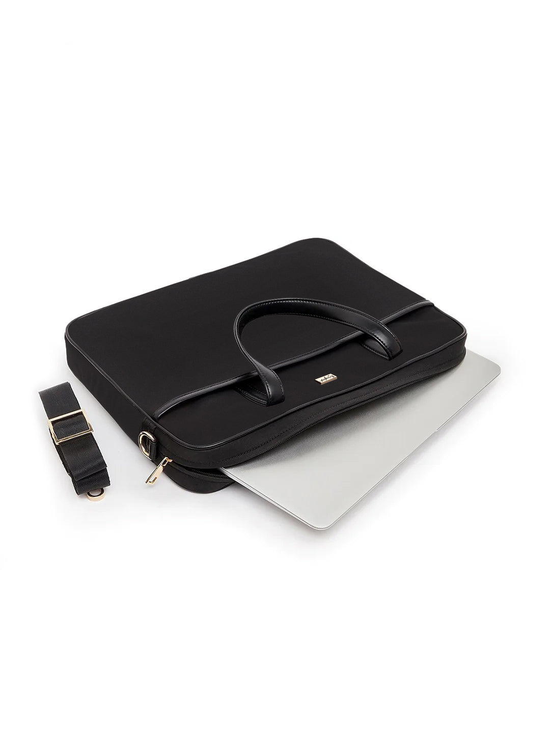 Berrylush Women Solid Black PU Detachable Sling Strap Zipper-Up Regular Laptop Bag