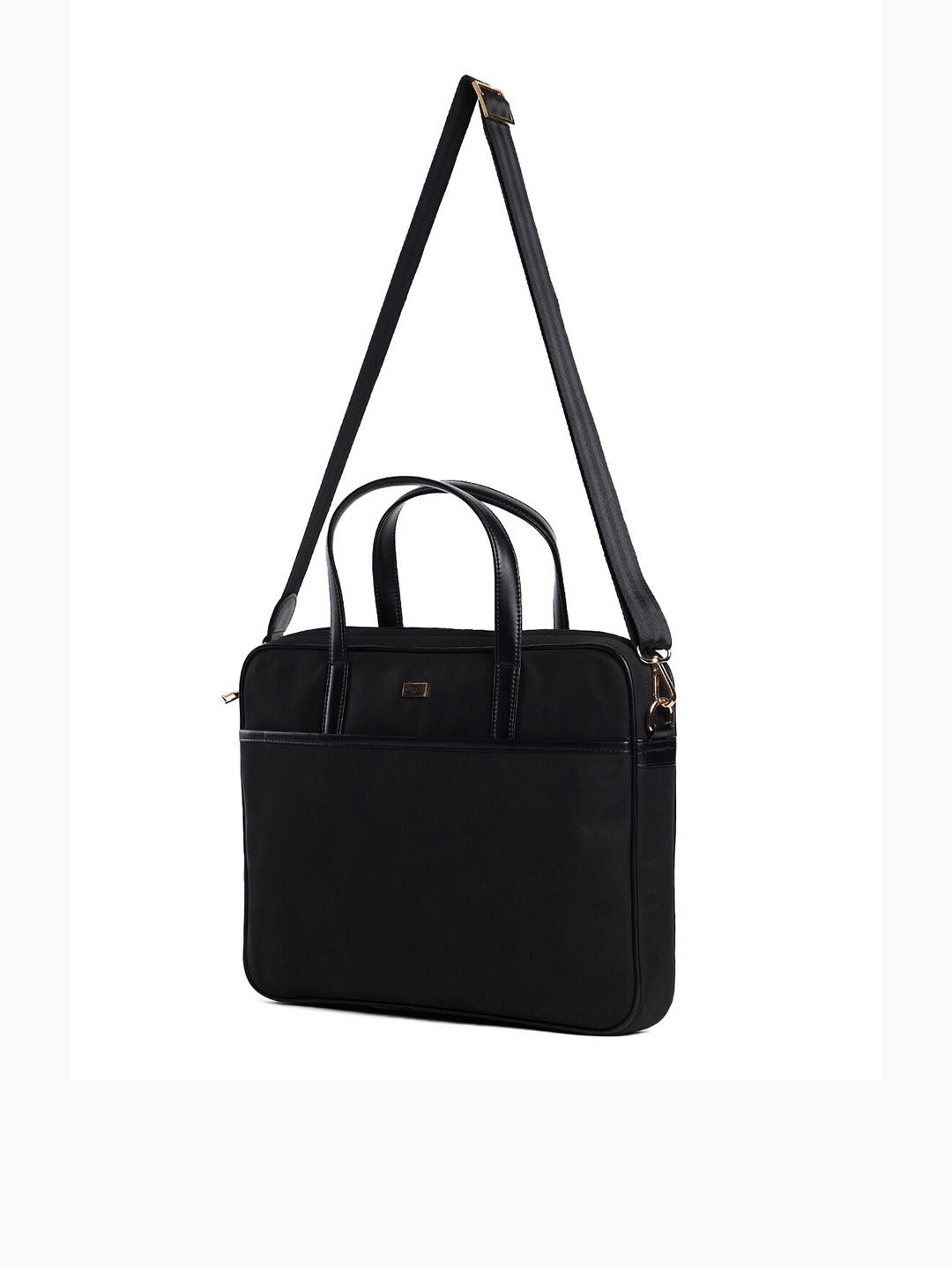 Keep your formal and smart casual style game up to its mark with this must-have captivating Solid Black Regular Laptop Bag launched from the latest accessories collection of Berrylush. Presenting a classic combination of black shade and solid pattern that gives this bag a voguish appearance with versatile style note and bold vibe. Elegantly designed with one main compartment that lends this bag a functional bonus with adequate space to hold on your laptop and other important documents. The two handles design makes this bag easy to pick up and commute with an effortless and sturdy grasp. Get instant ready for a meeting or business trip without compromising style by accompanying your outfit with this laptop bag.