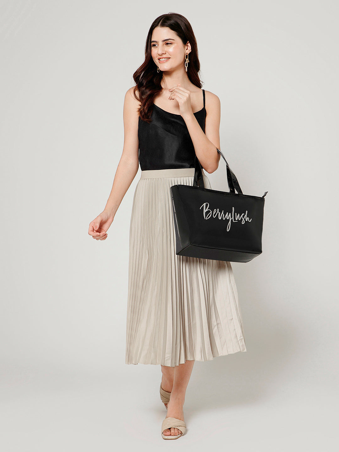 - Black shade with a solid pattern gives this bag a luxurious look and feel