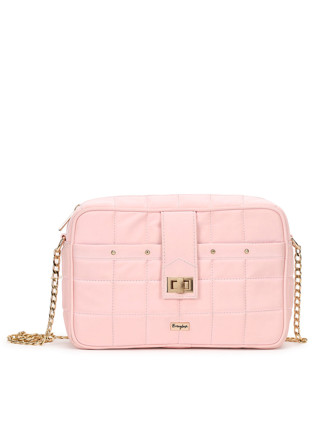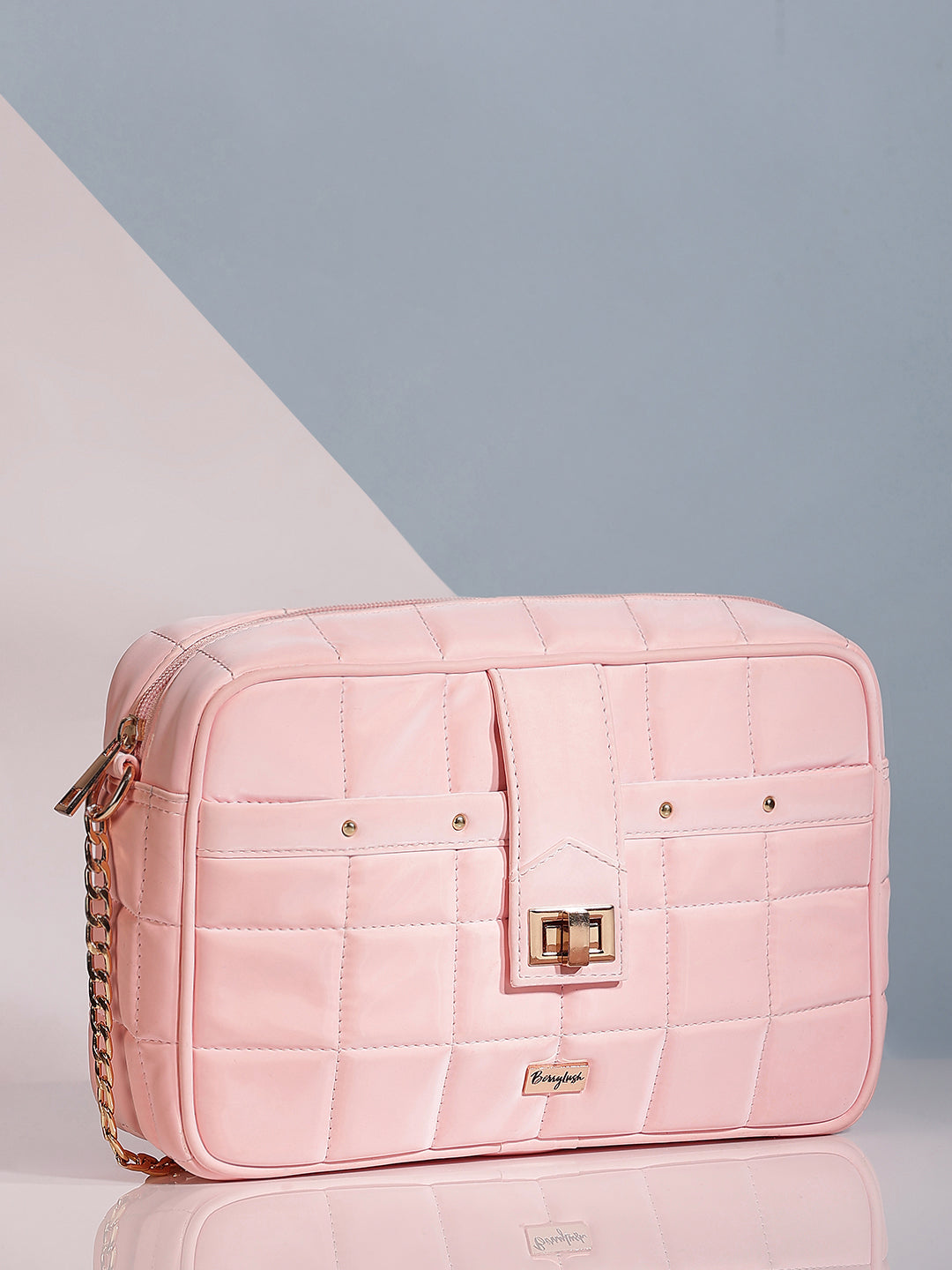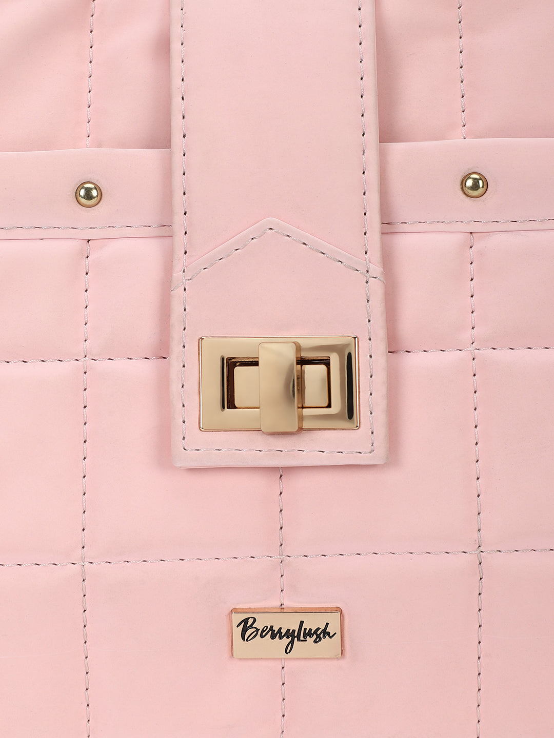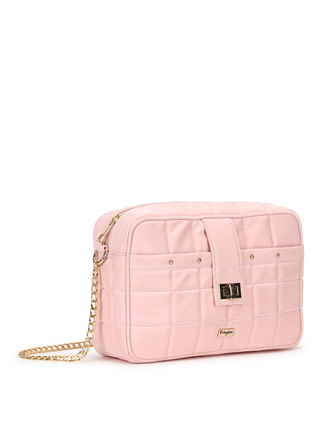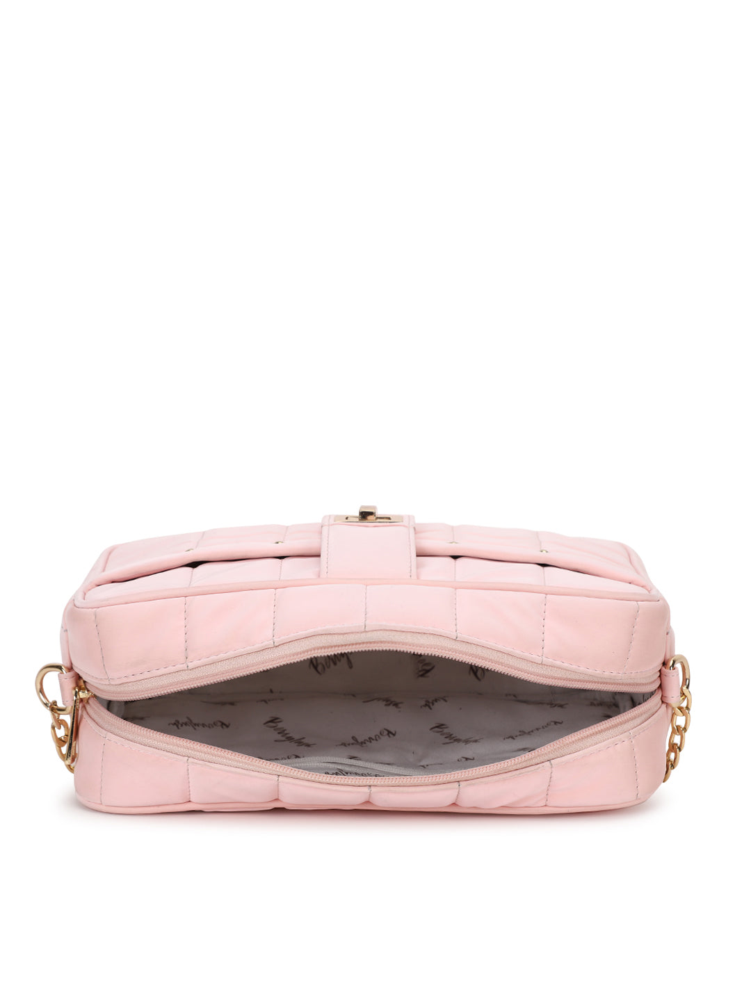 Berrylush Women Solid Pink PU Non-Detachable Sling Strap Quilted Regular Sling Bag