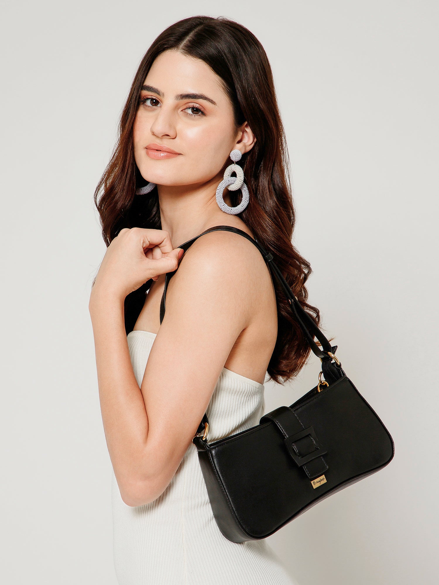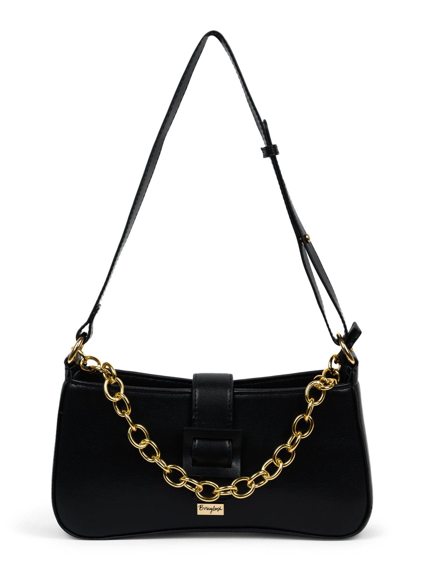 Elevate your accessory game with the Berrylush Solid Black Synthetic Leather Shoulder Bag. Crafted for modern sophistication, this stunning bag is tailor-made for casual outings where style is key. The sleek synthetic leather exudes elegance in a versatile black hue accented by an eye-catching chain strap that adds a touch of glamour to any ensemble. Securely store your essentials within its solitary main compartment, confidently fastened with a smooth zipper closure. Designed thoughtfully with one sturdy handle and a non-detachable sling strap, it promises both comfort and durability as you make your fashion statement on the go!