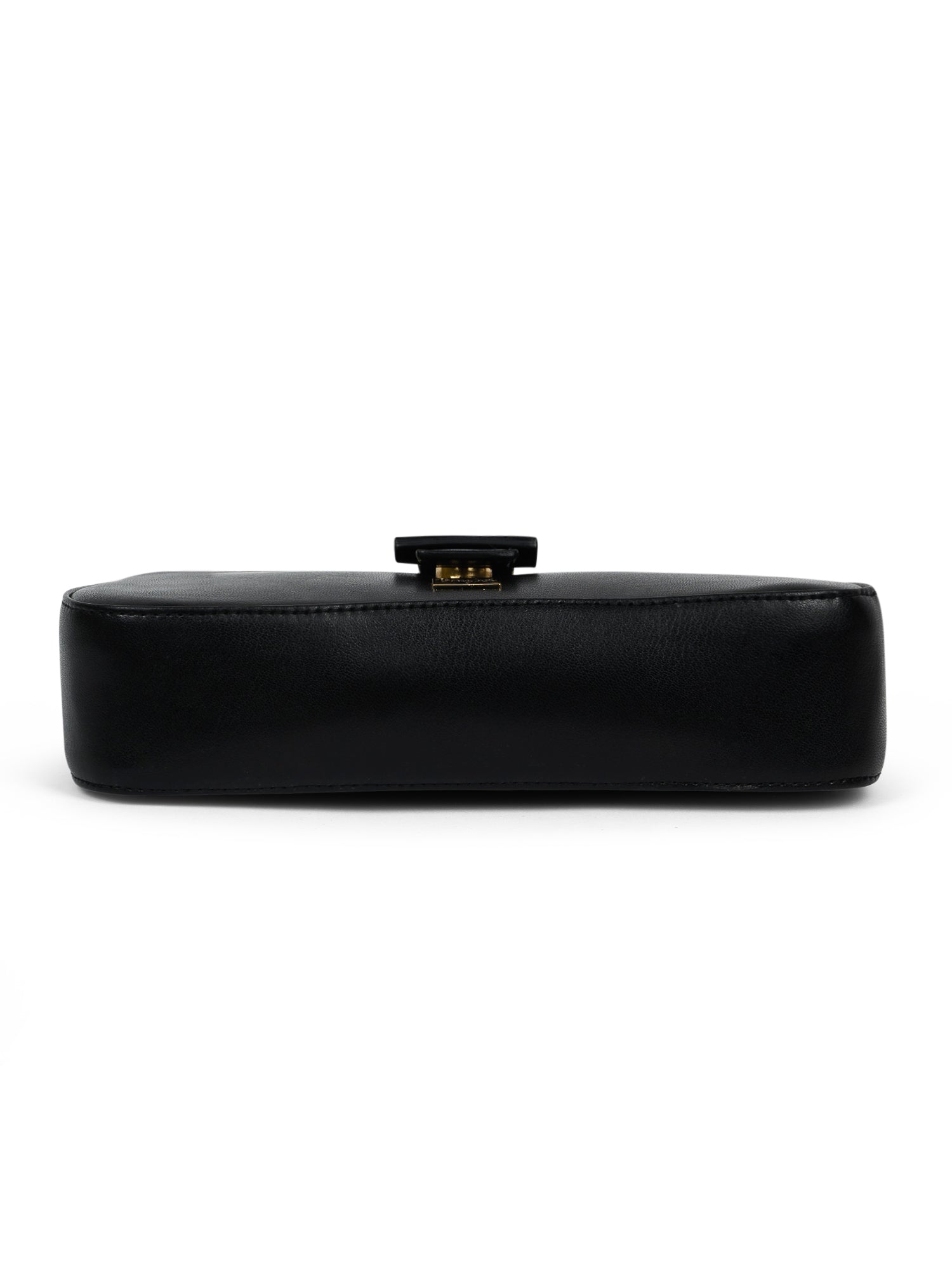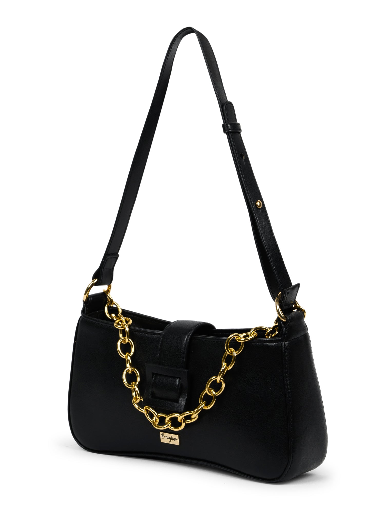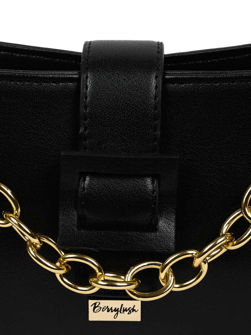 Berrylush Women Solid Black Synthetic Leather Chain Strap One-Handle Zipper-Up Shoulder Bag