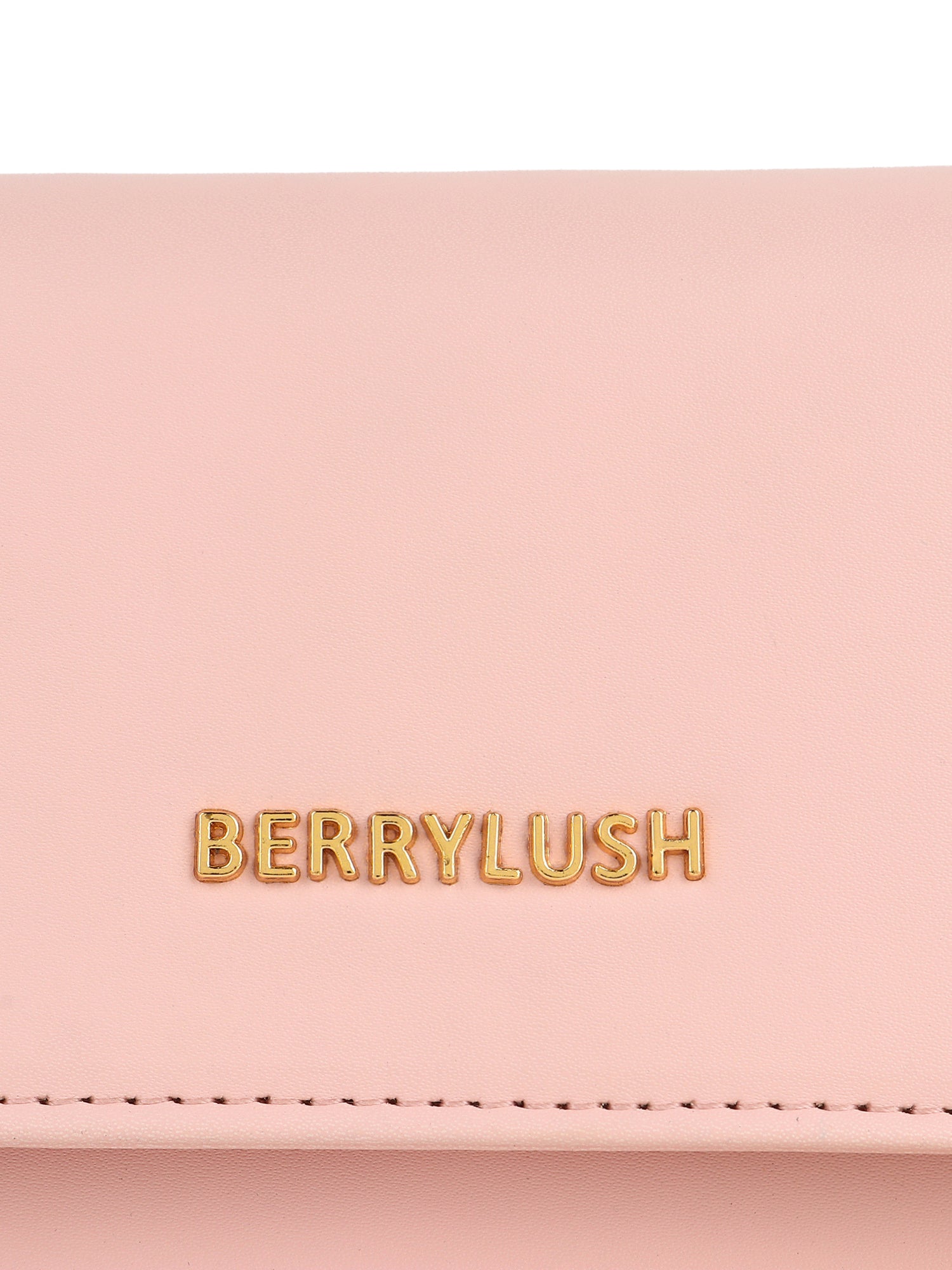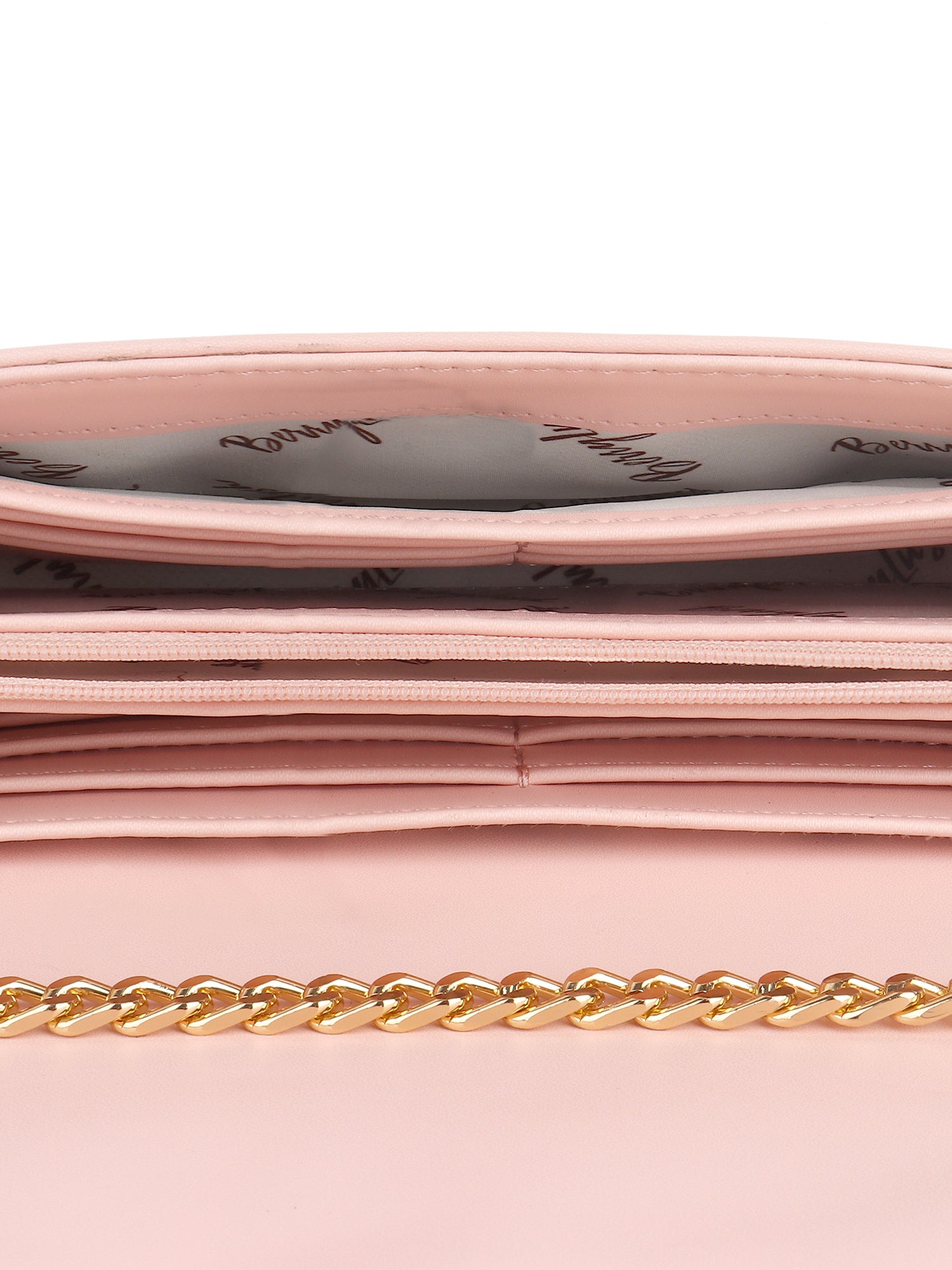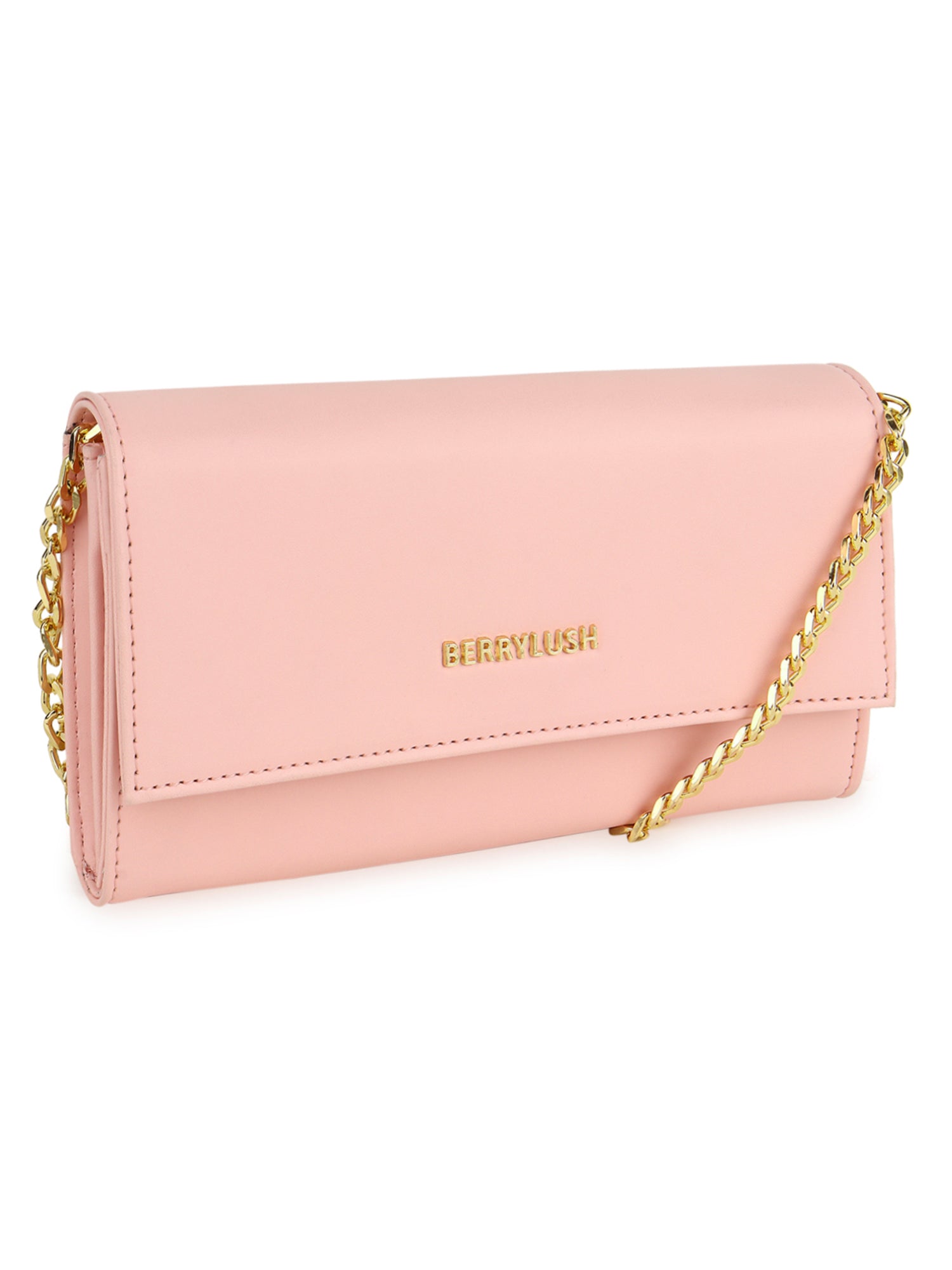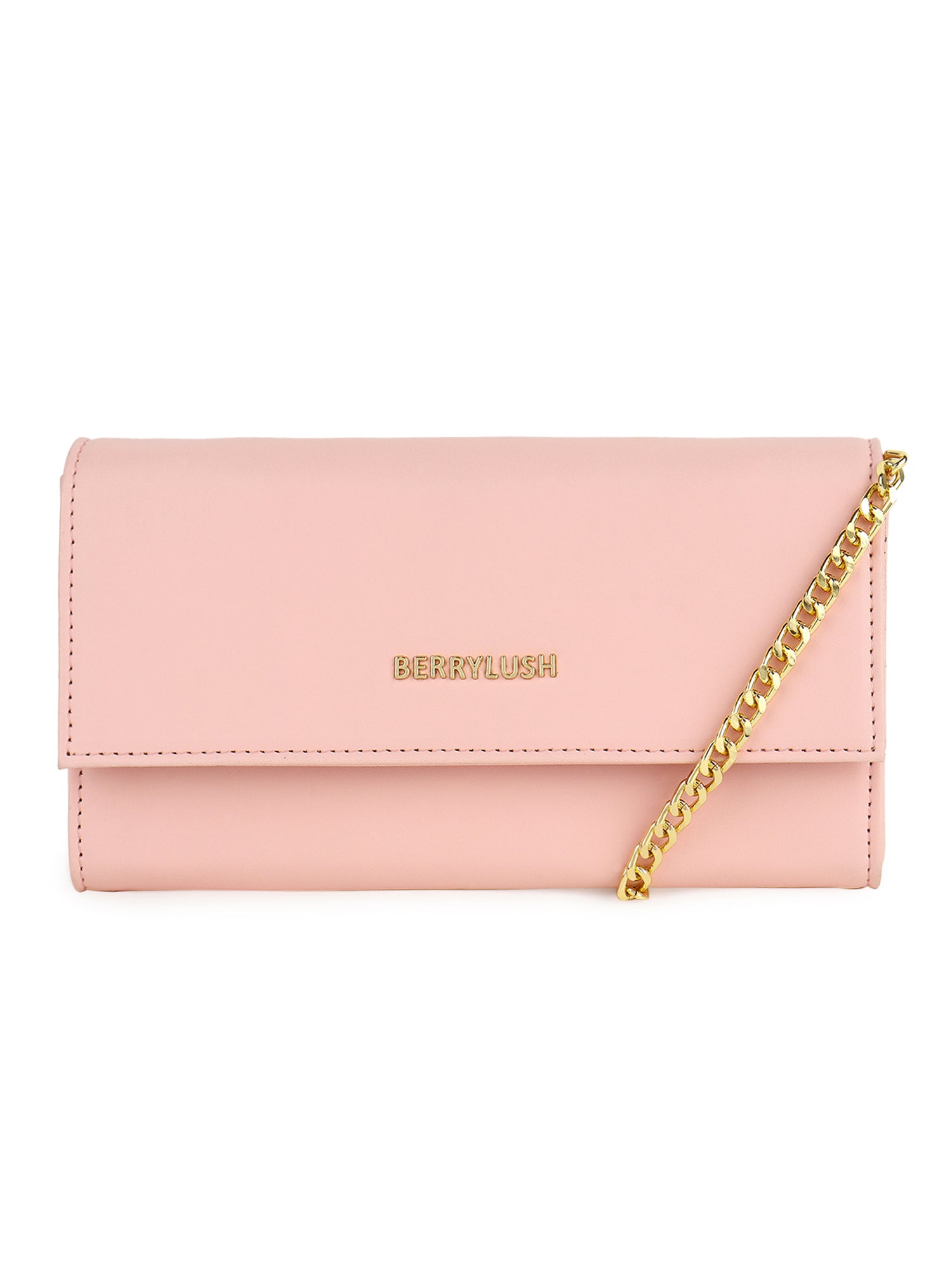 Berrylush Women Solid Pink PU Tassel Detail Chain Sling Strap Clutch