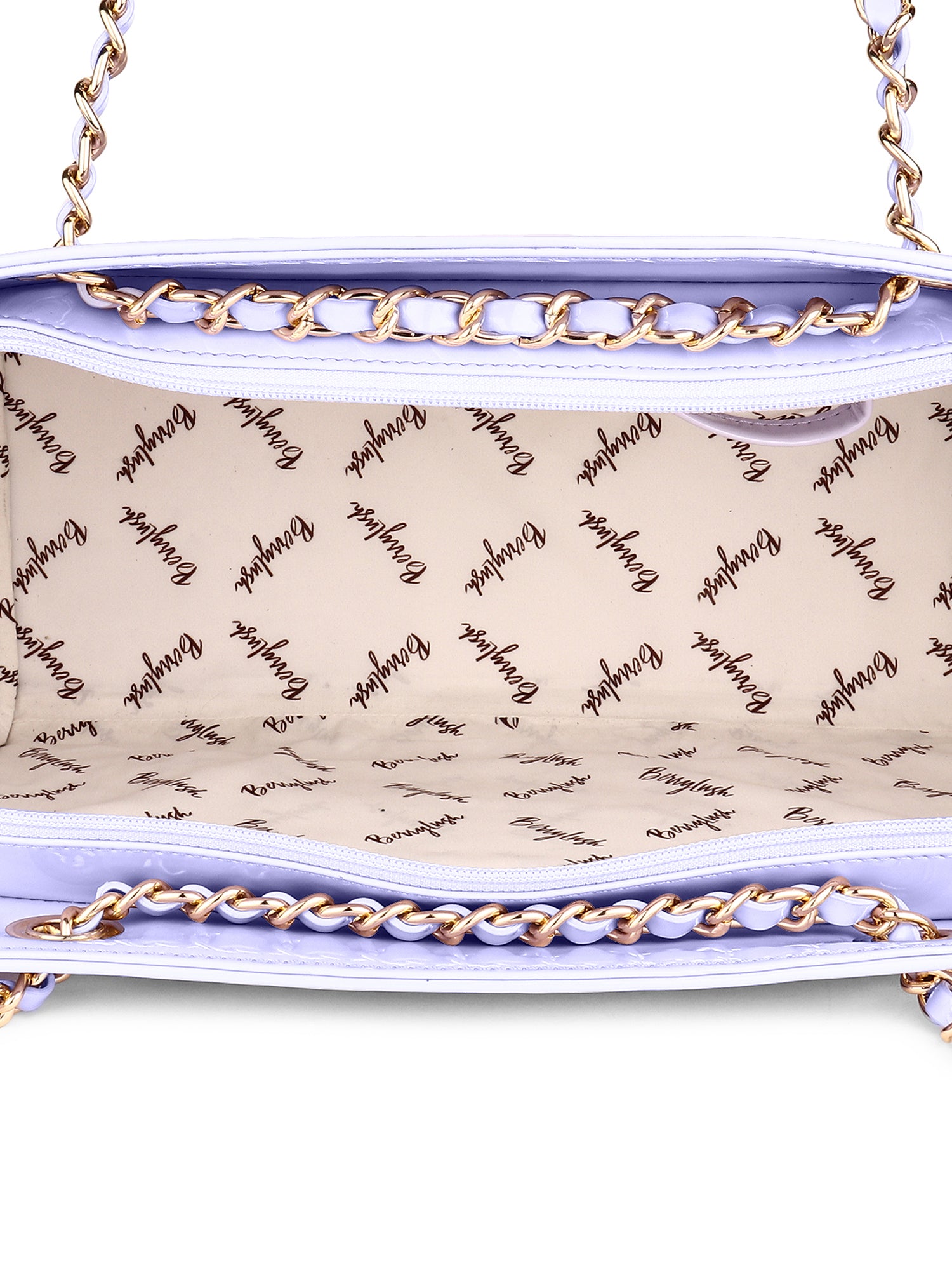 Berrylush Women Purple Typography PU Mobile Pouch Embellished Oversized Tote Bag