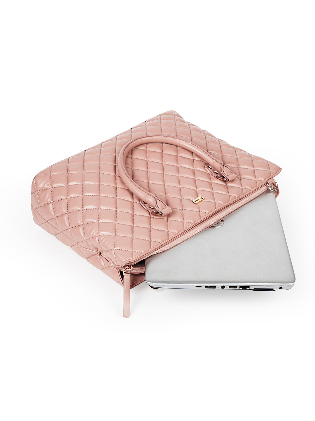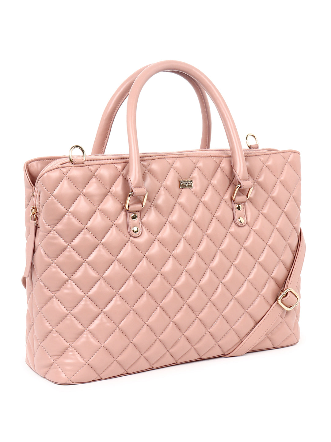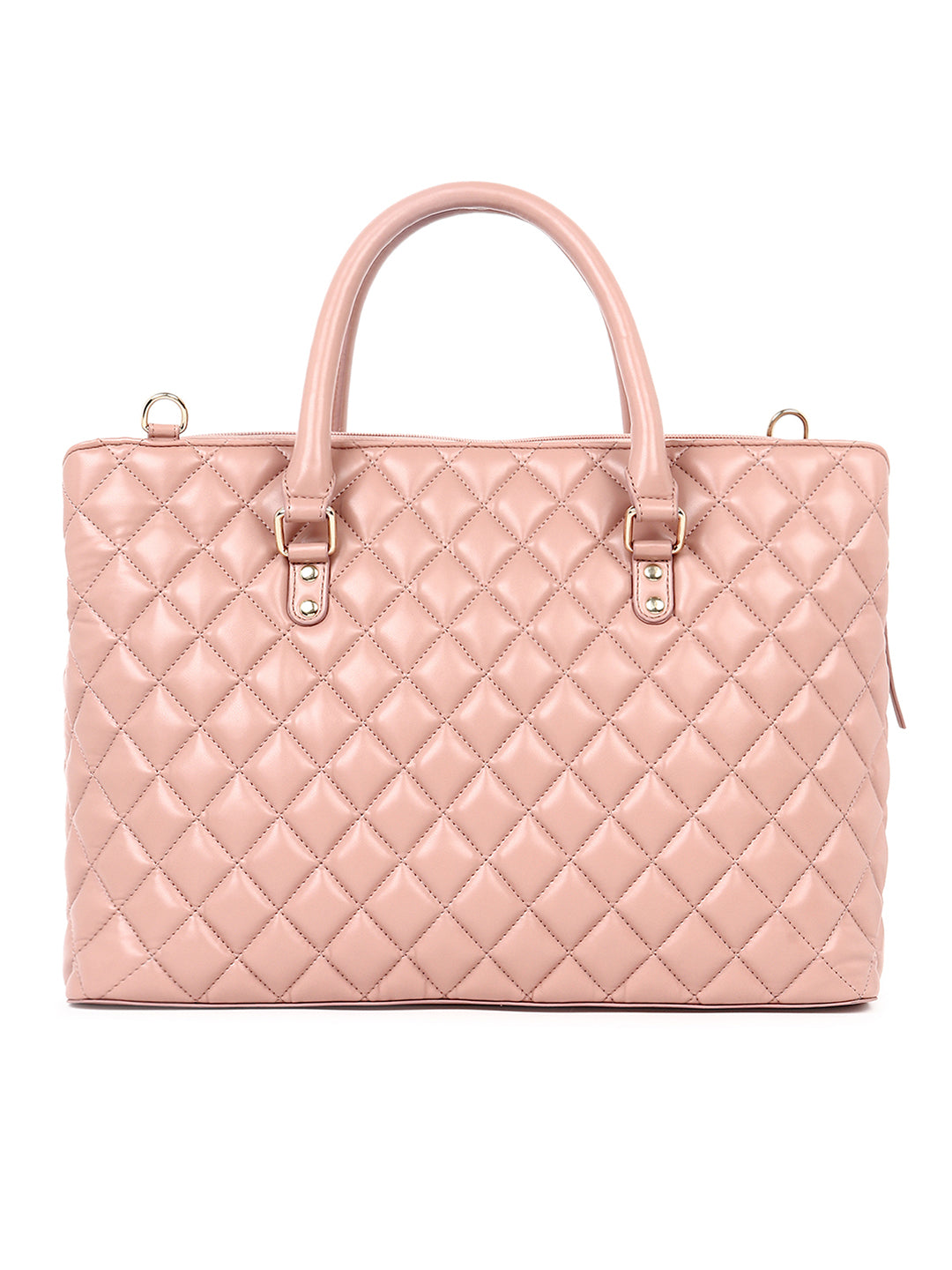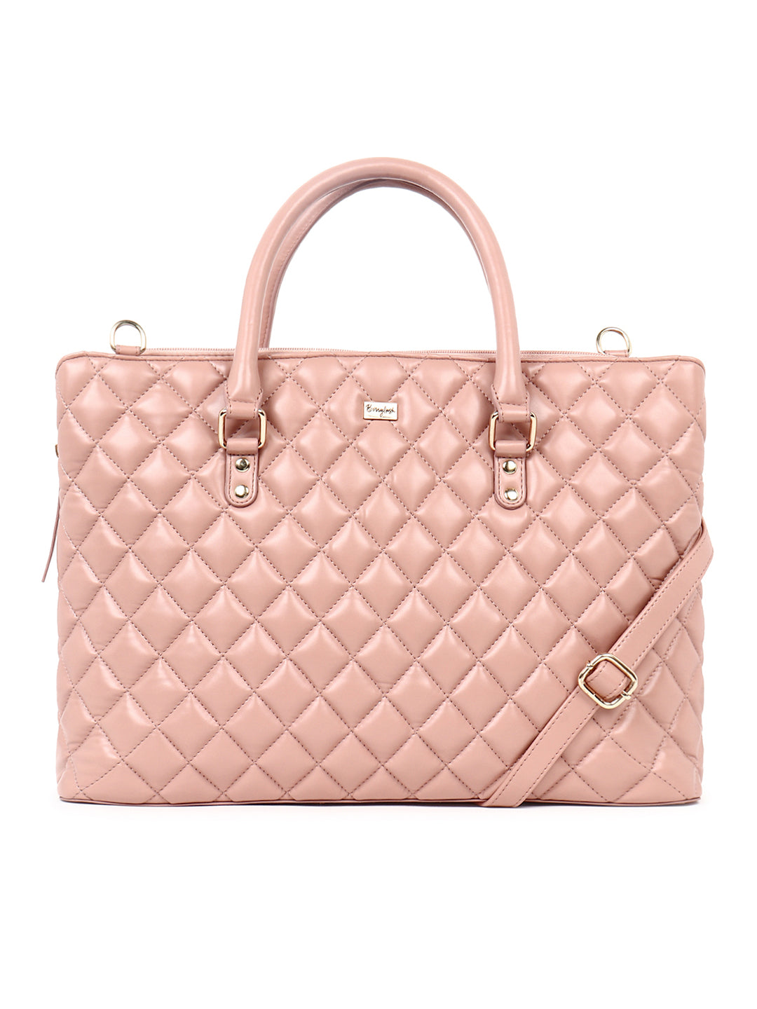 Berrylush Women Solid Pink PU Detachable Sling Strap Button-Up Quilted Regular Laptop Bag