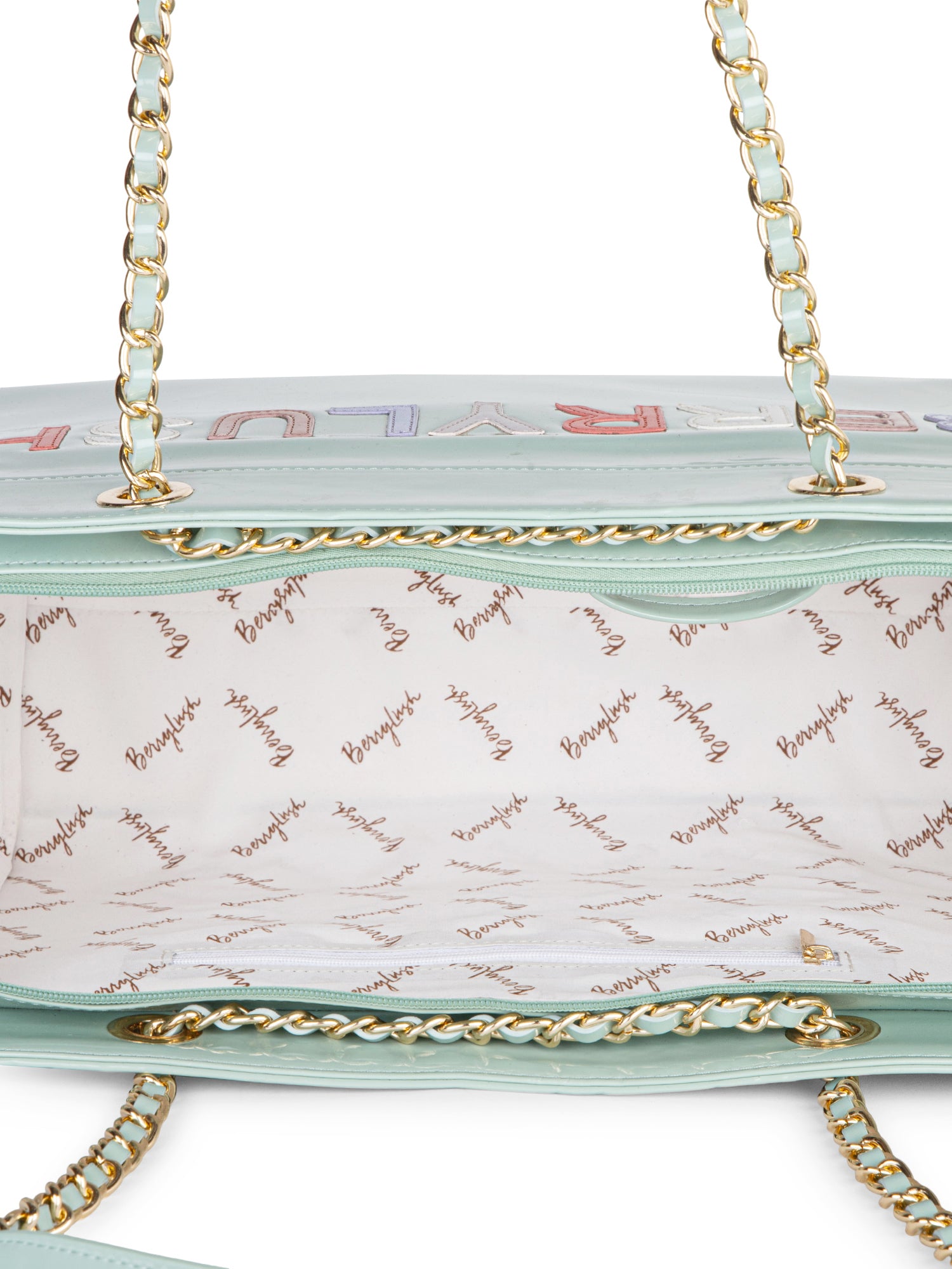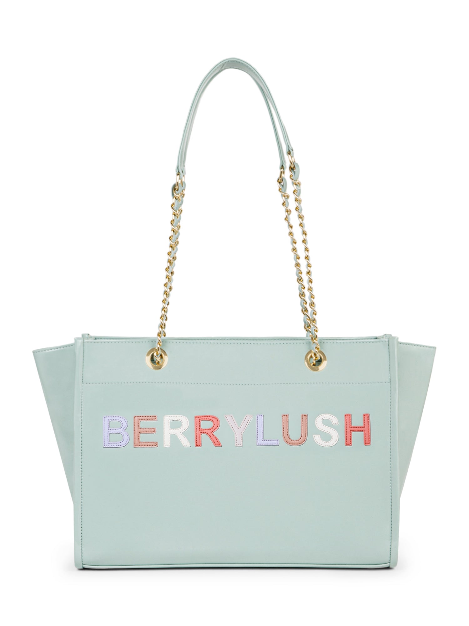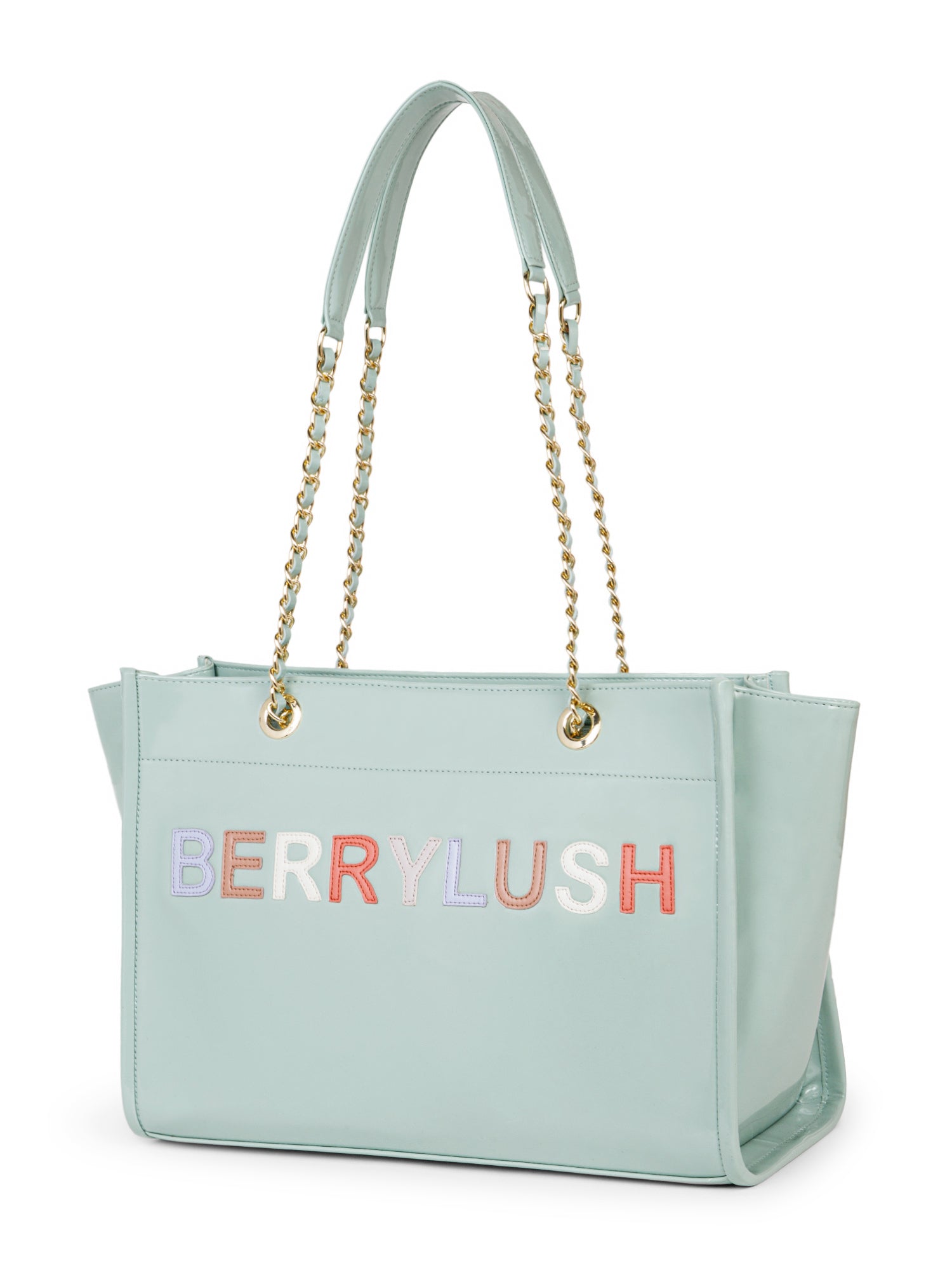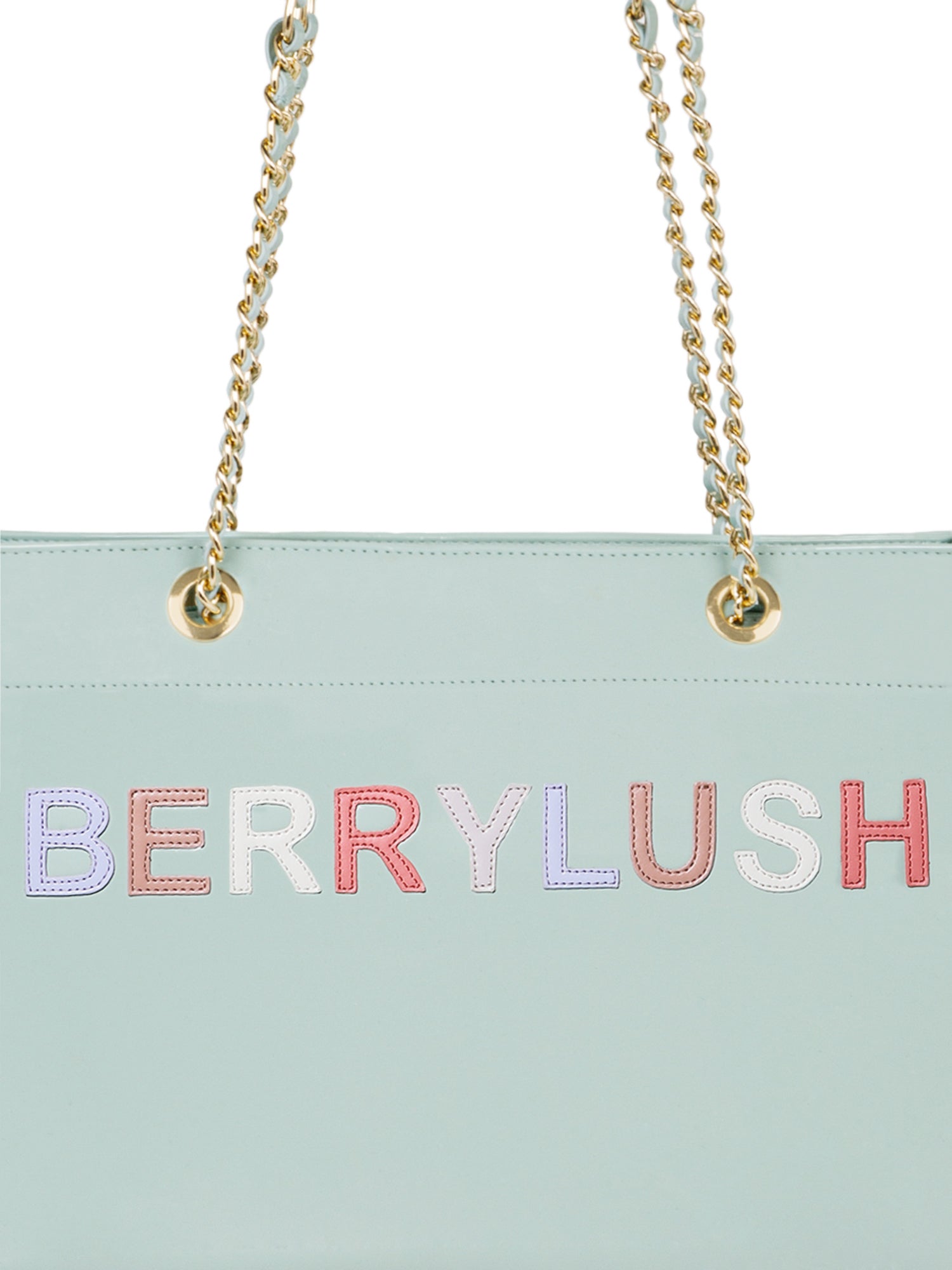 • The traditional brand name on the outside of this bag is next to the Berrylush emblem