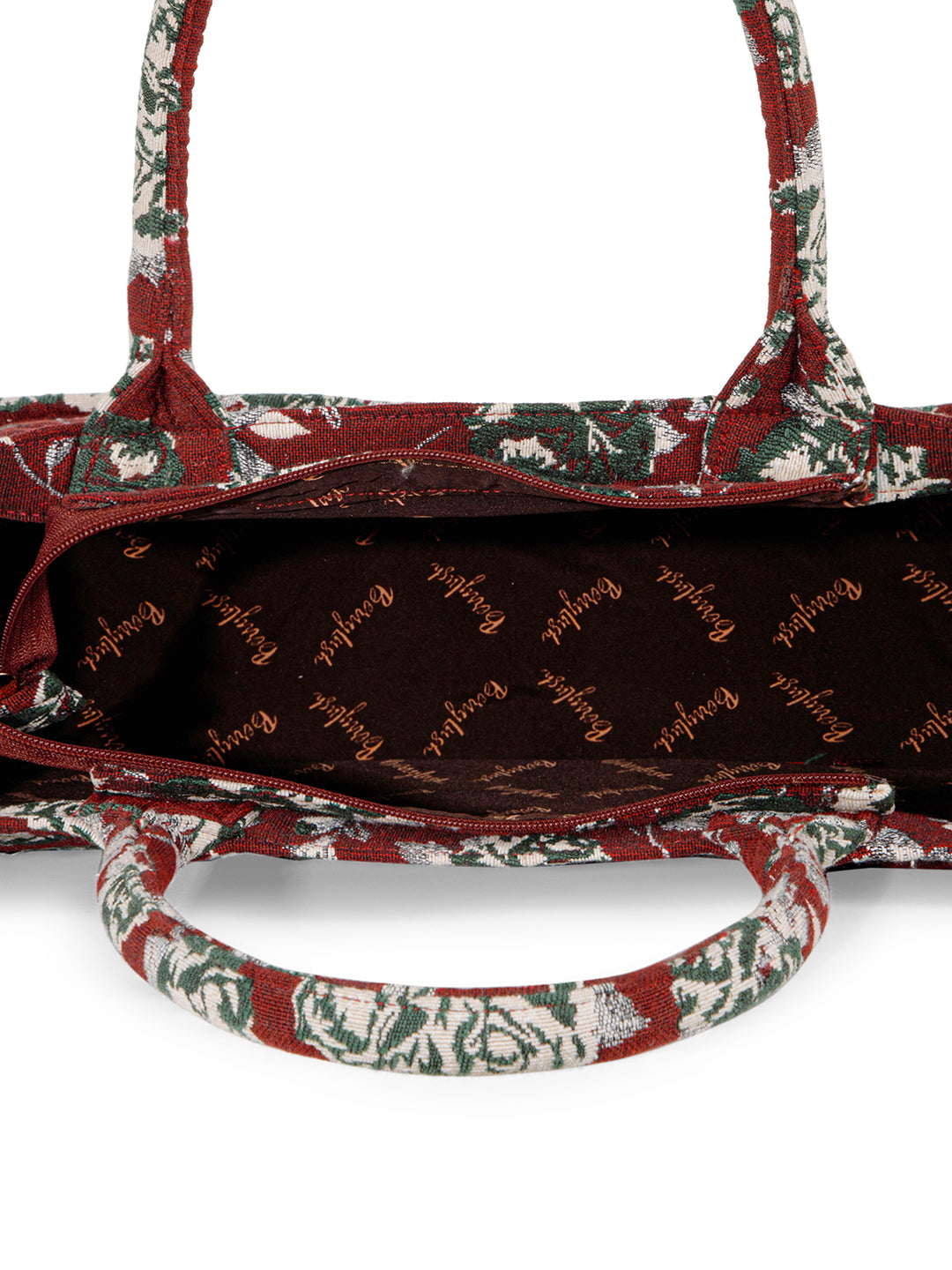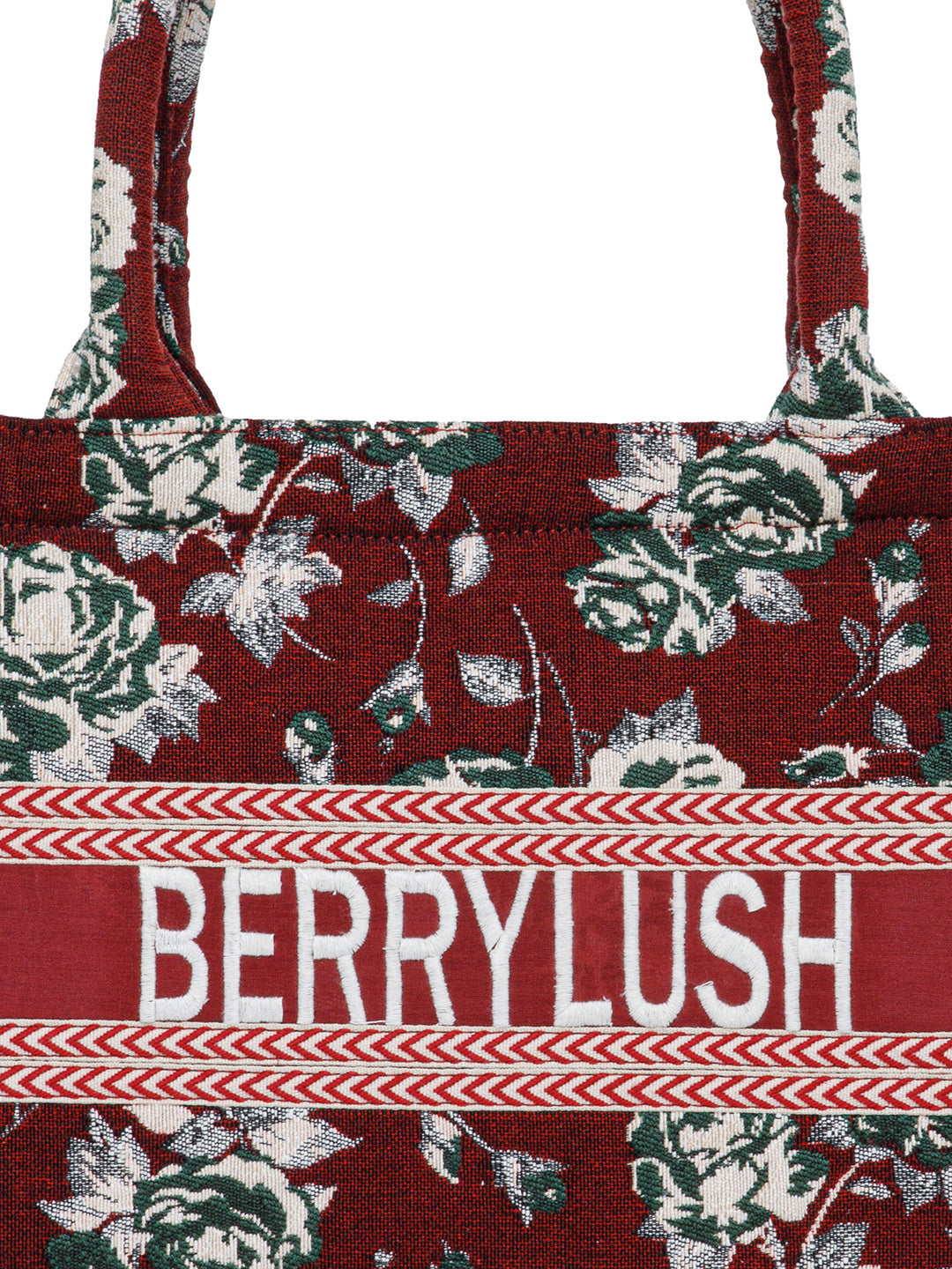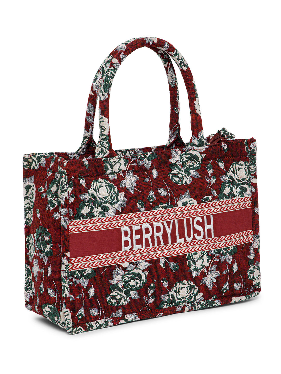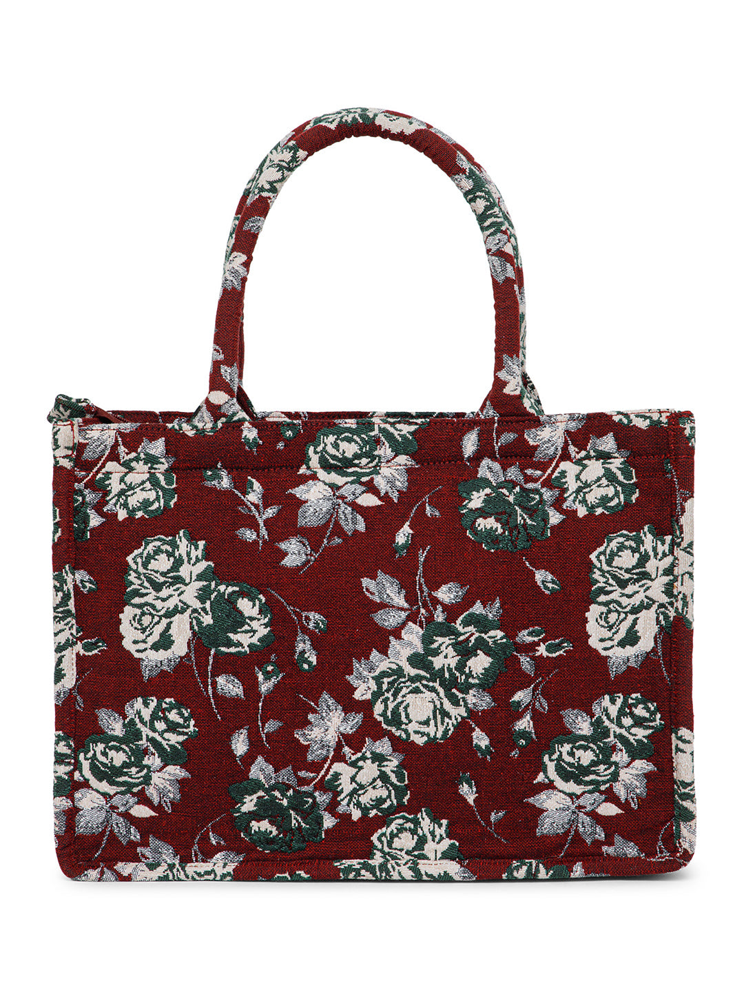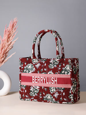 Berrylush Women Maroon & White Floral Printed Polyester Zipper-Up Embroidered Tote Bag
