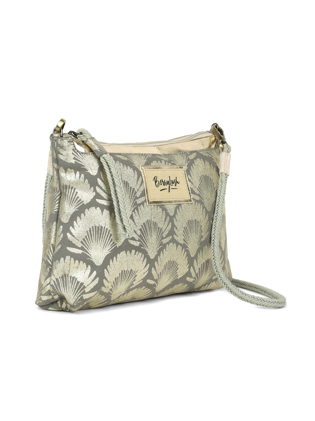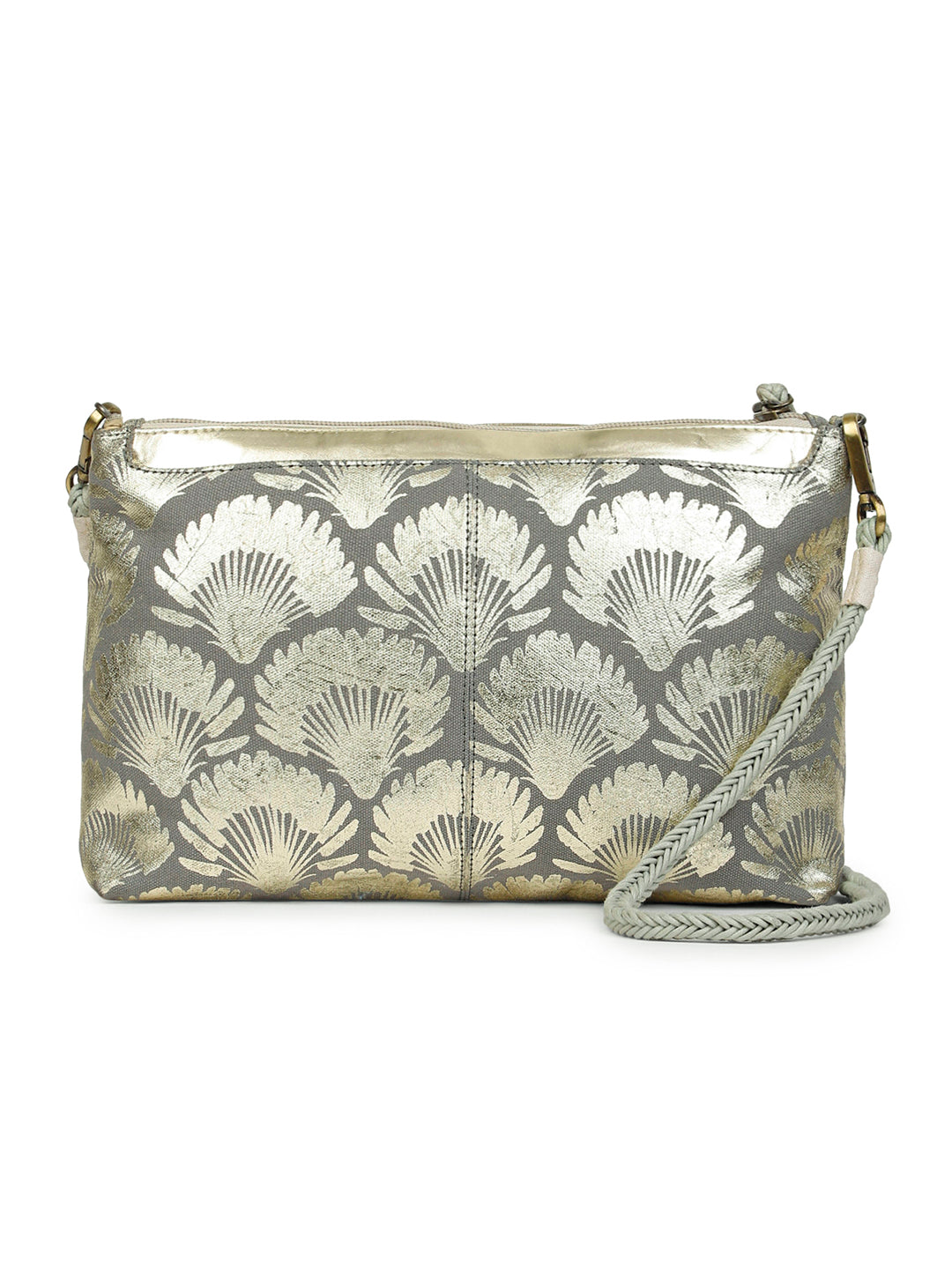 Berrylush Women Grey & Silver Floral Printed Canvas Detachable Sling Strap Small Clutch/Sling Bag
