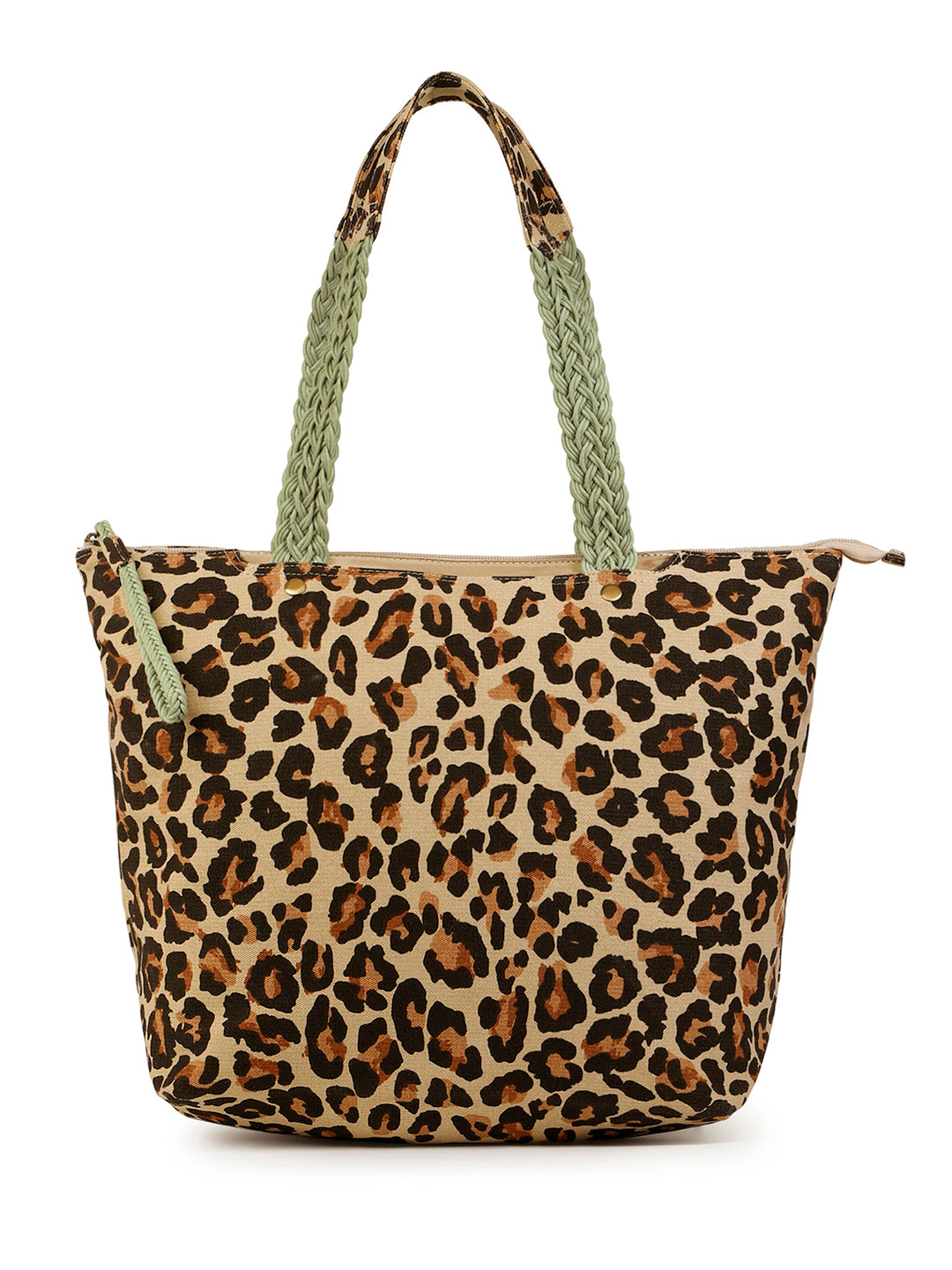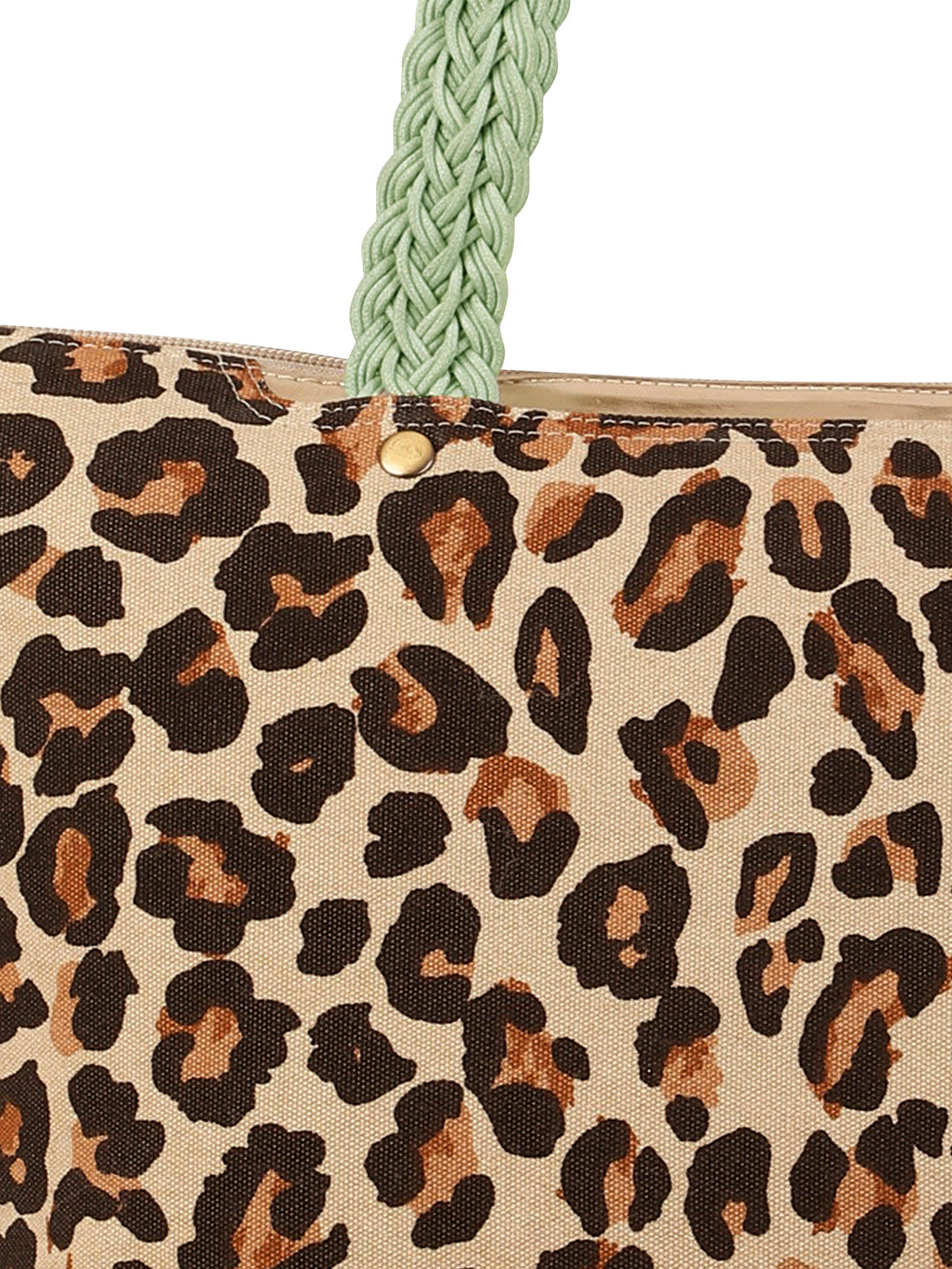 Berrylush Women Brown Leopard Printed Canvas Zipper-Up Regular Tote Bag