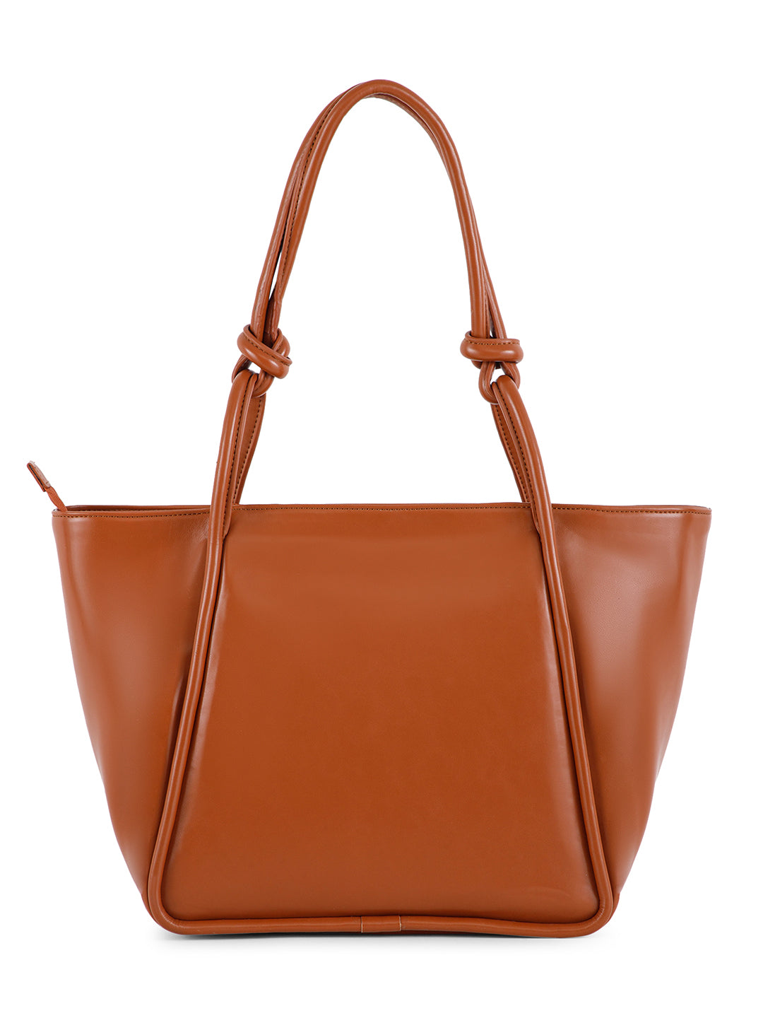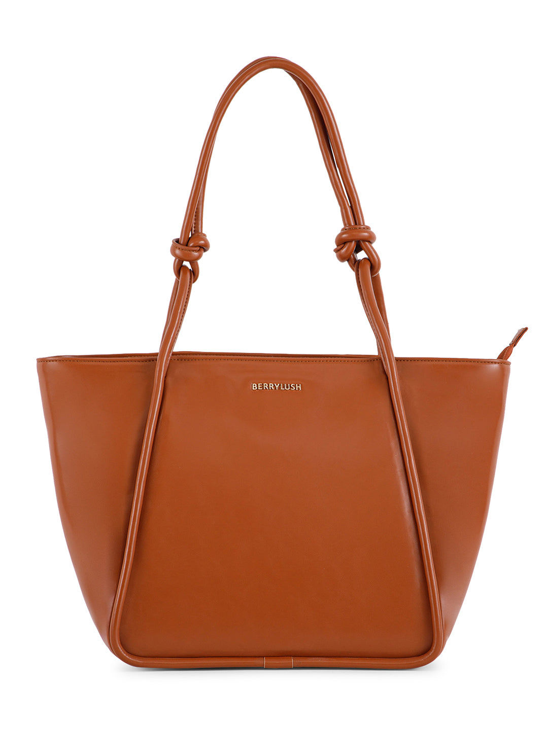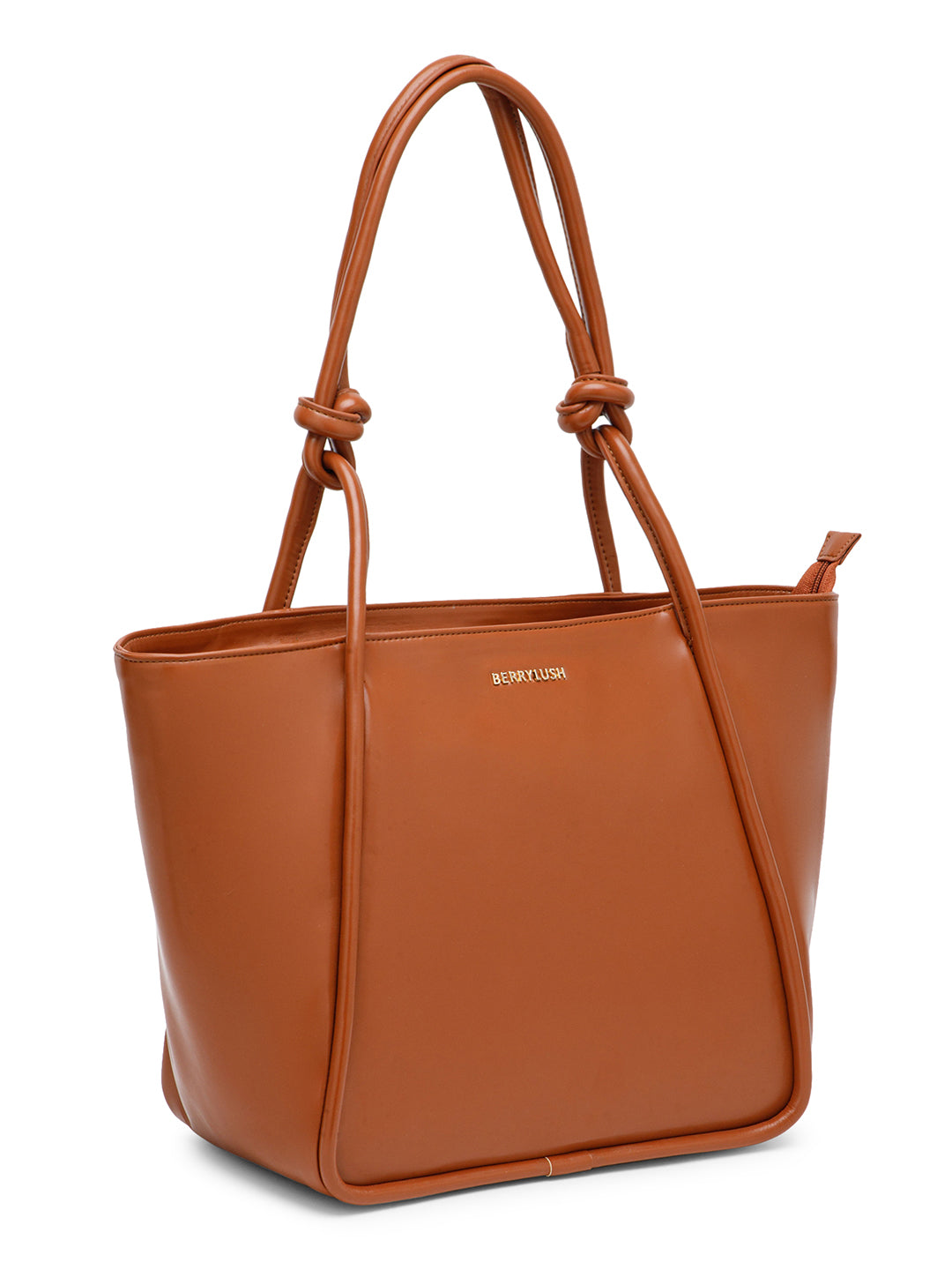 Berrylush Women Solid Brown Synthetic Leather Zipper-Up Knot Oversized Tote Bag