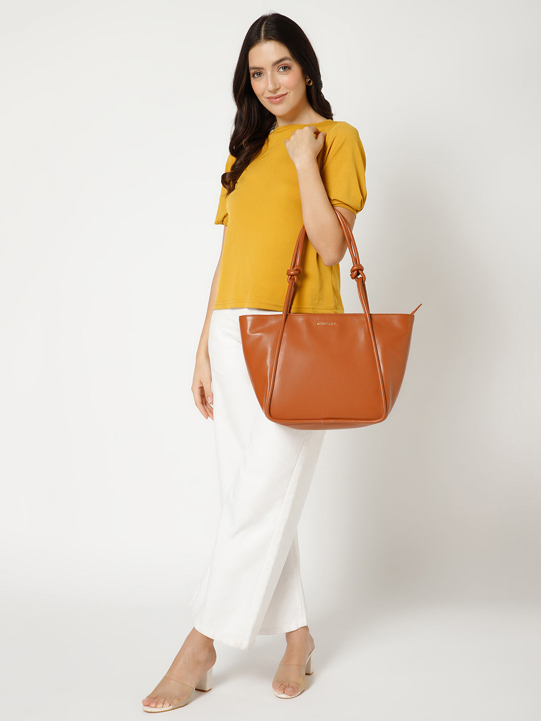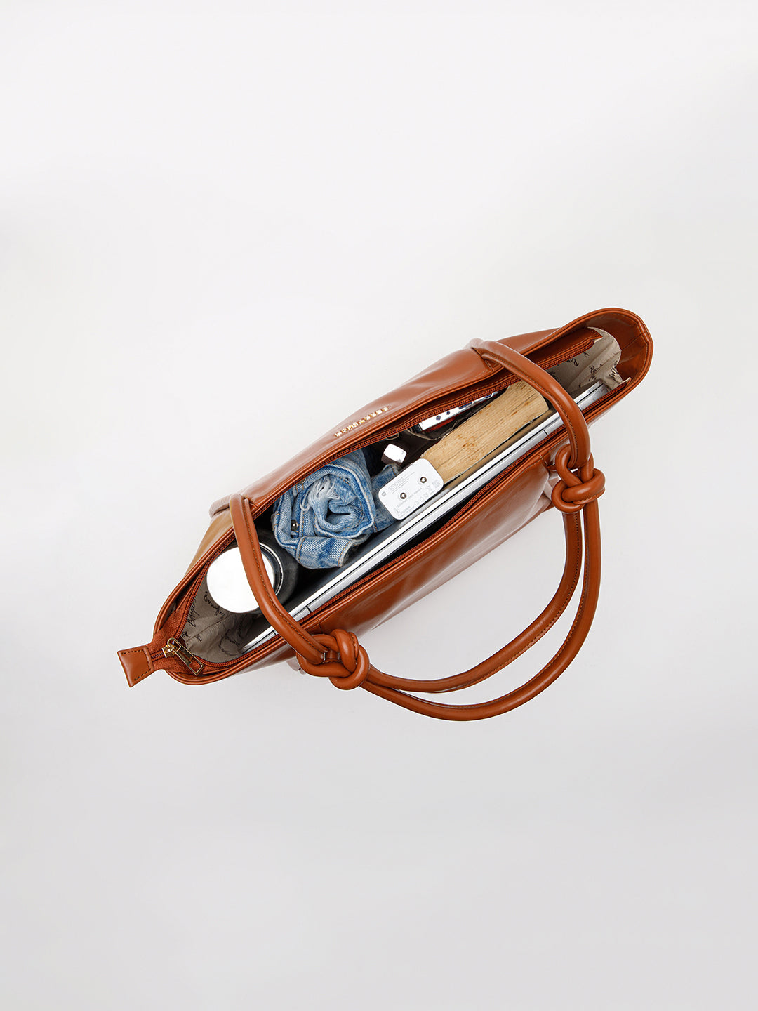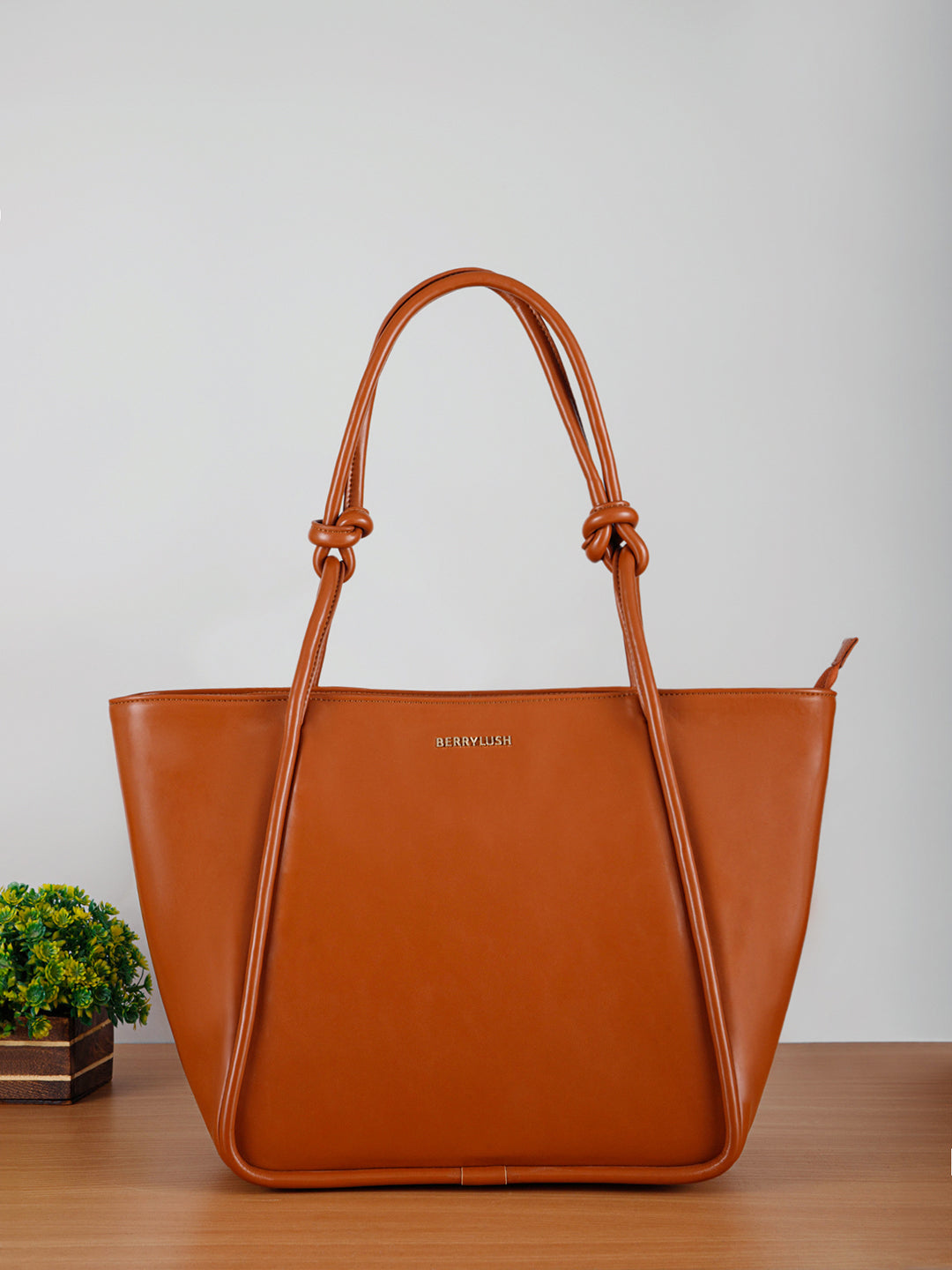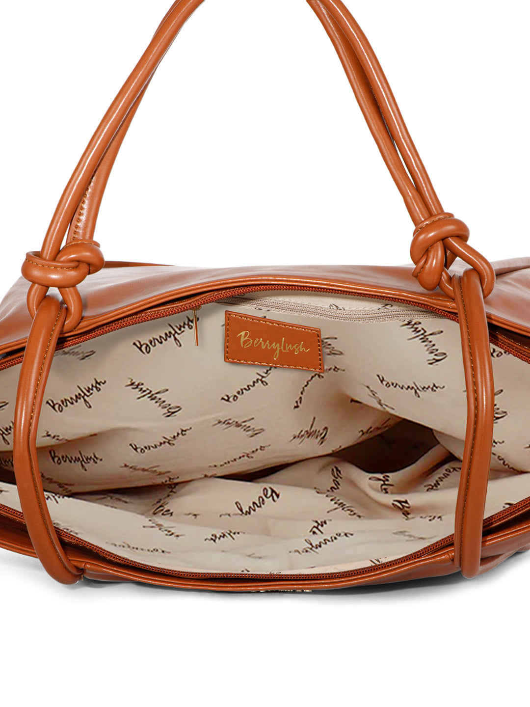 Berrylush Women Solid Brown Synthetic Leather Zipper-Up Knot Oversized Tote Bag