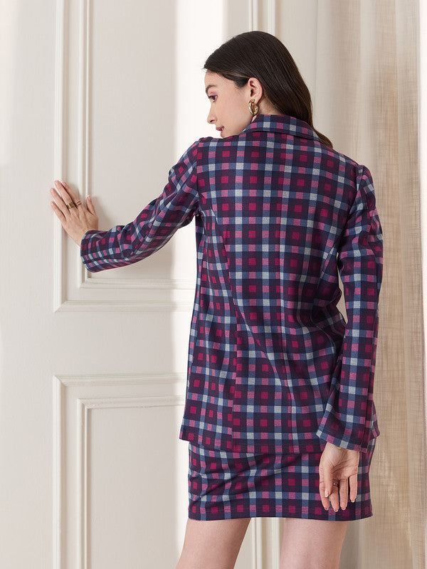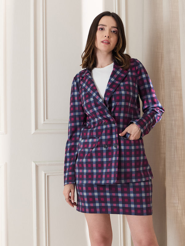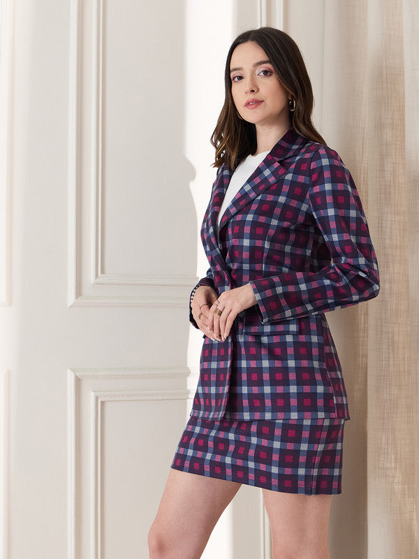 Berrylush BIZwear Women Multicolour Notched Collar Neck Double Breasted Regular Blazer & Slip-On Mini Skirt Co-Ord Set