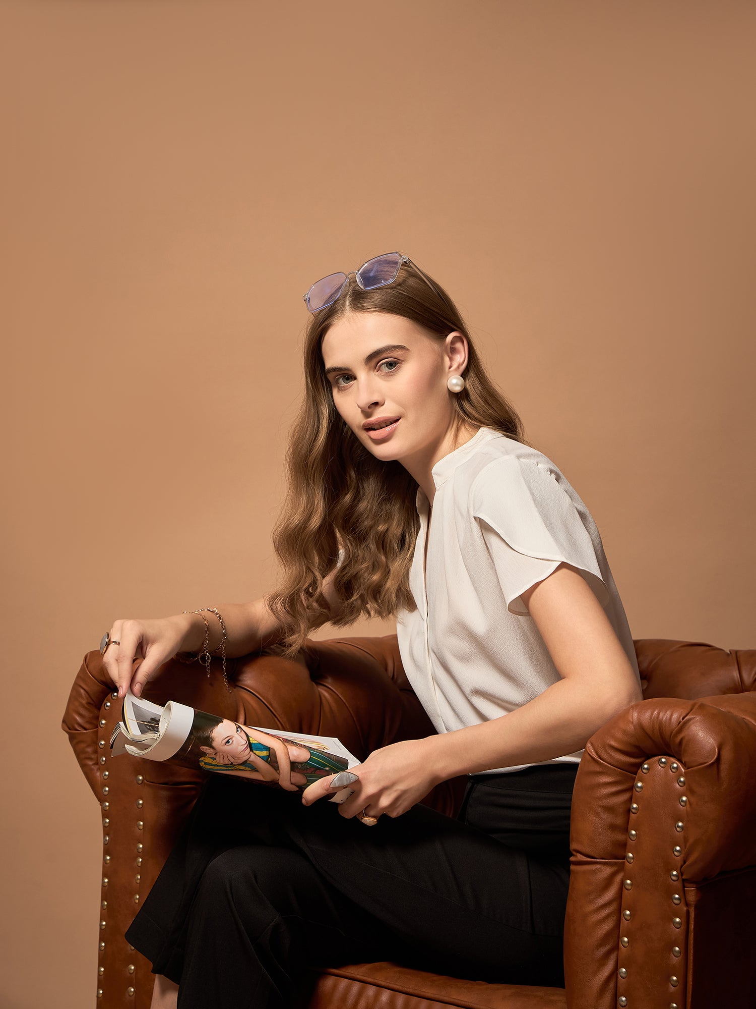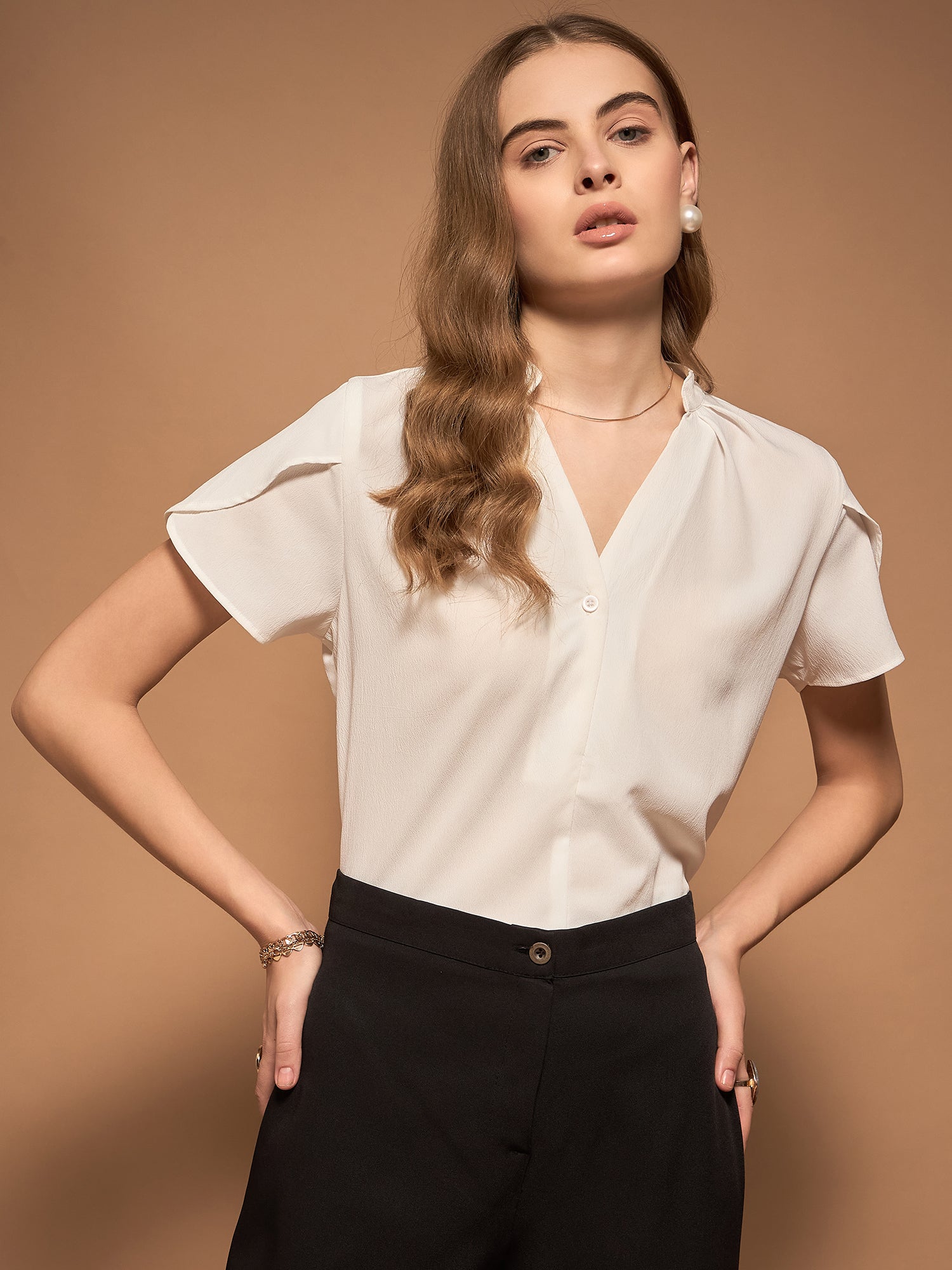 Berrylush BIZwear Women White Solid V-Neck Regular Formal Top