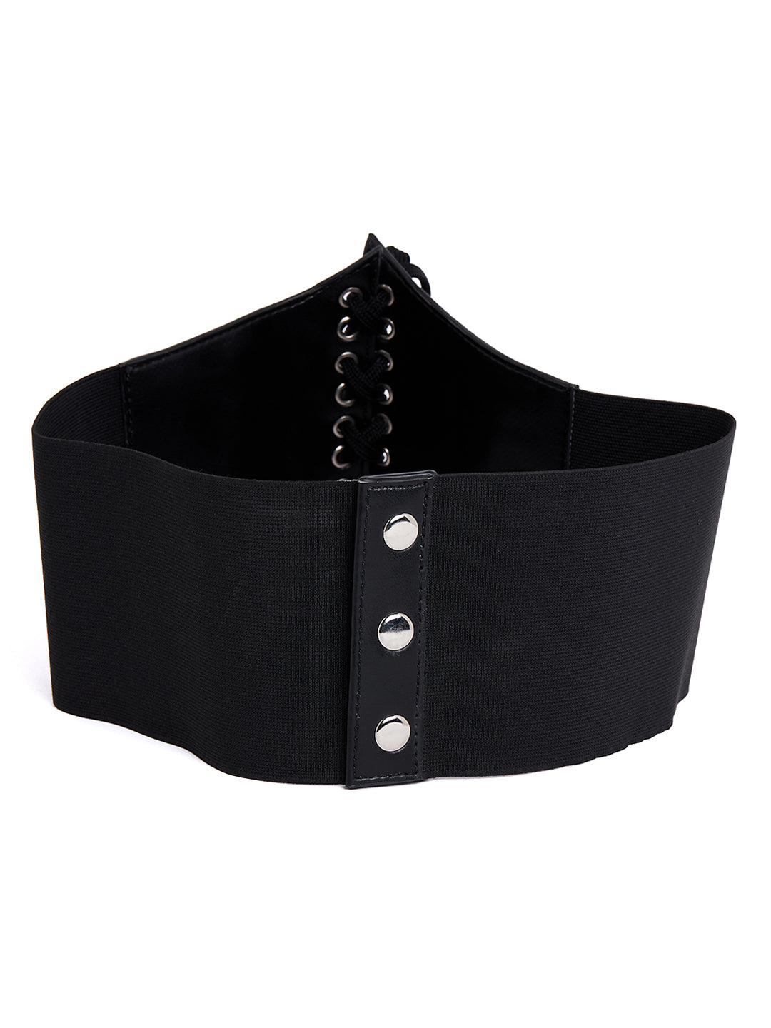 It's high time to upgrade your accessory collection with some trendy and must-have options just like this enchanting Embellished Black Smart Casual Wide Belt introduced by Berrylush. Designed with an elastic waistband that enhances the overall stretchability of this belt with excellent elastic nature to offer size flexibility and immense comfort. Presenting with a wide strap that gives this belt a corset-style look while gracefully showing off your natural curves by lending an elegant shape to your waist. Made from the finest synthetic leather to lend this belt a smart appearance with astonishing durability and resistance from scratches. Wear this belt over your favourite dress to get your dreamy silhouette with a fashion-flattering look.