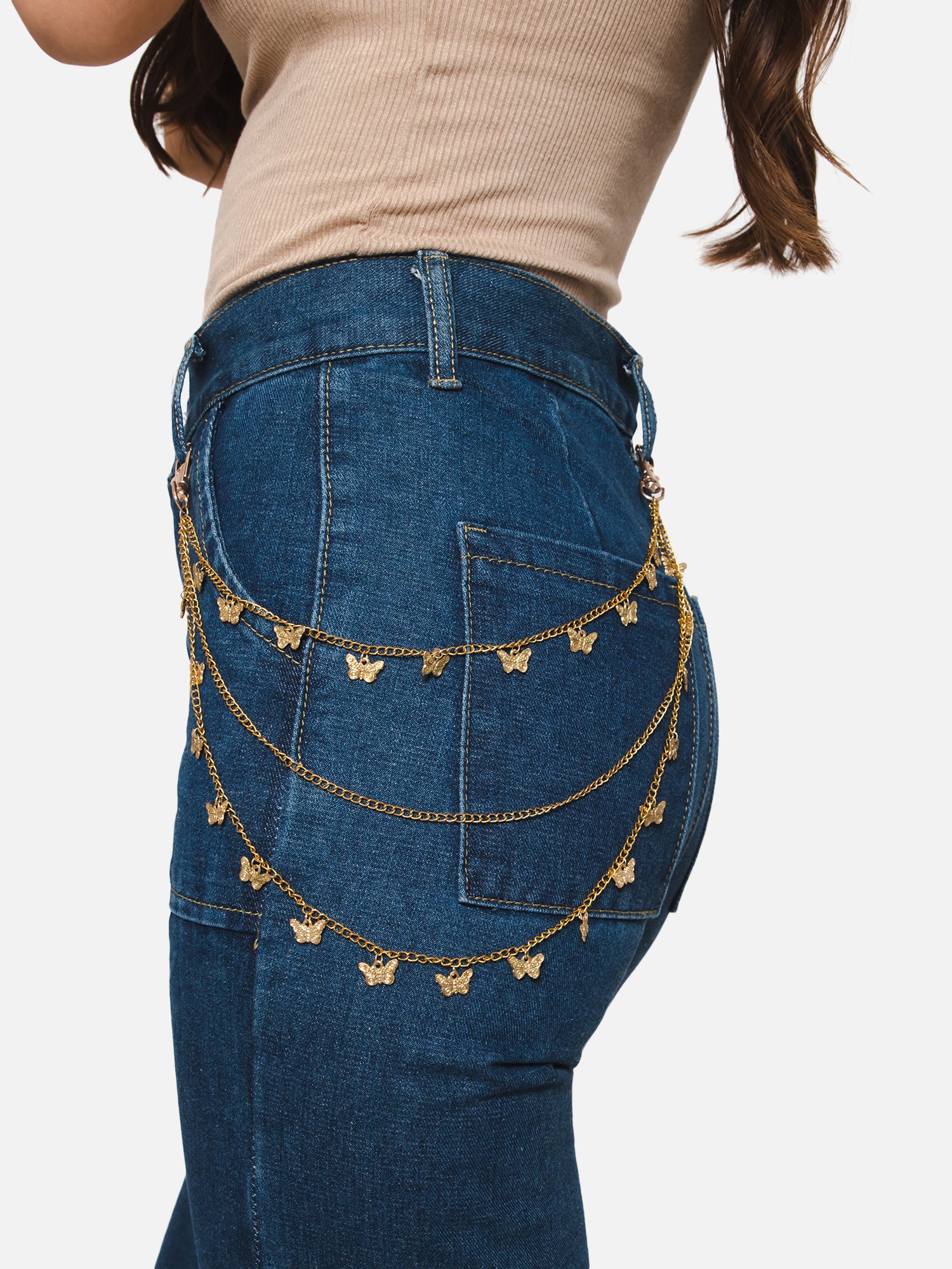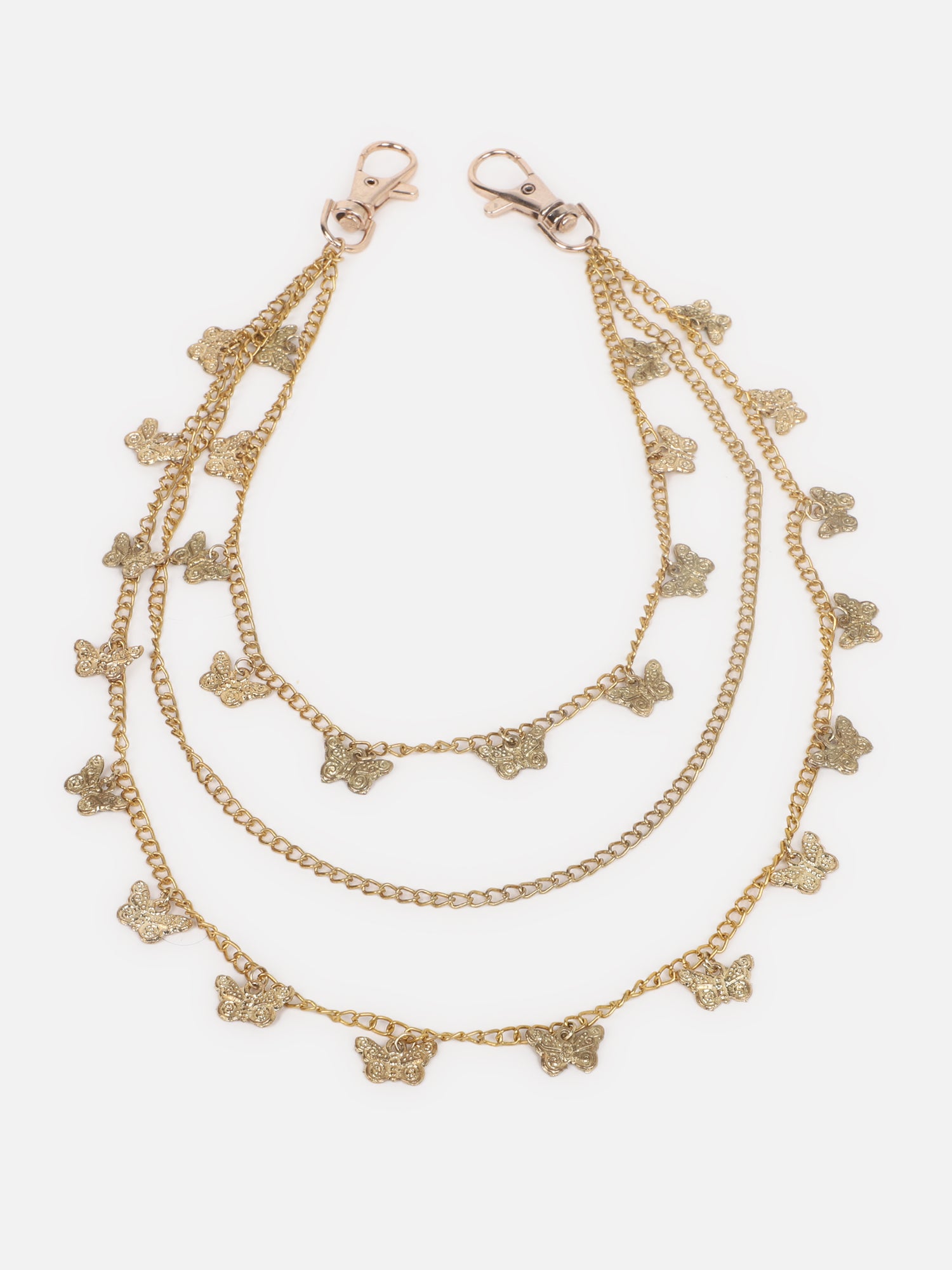 Berrylush Women Golden Metal Butterfly Layered Interlock Slim Chain Belt