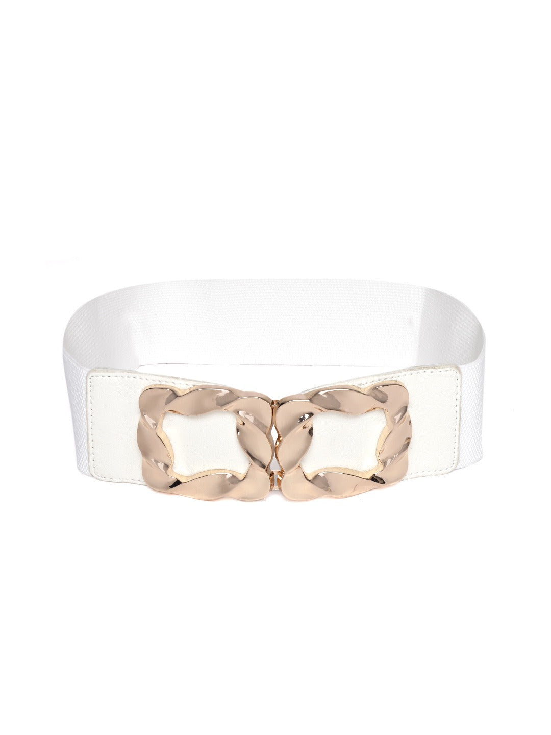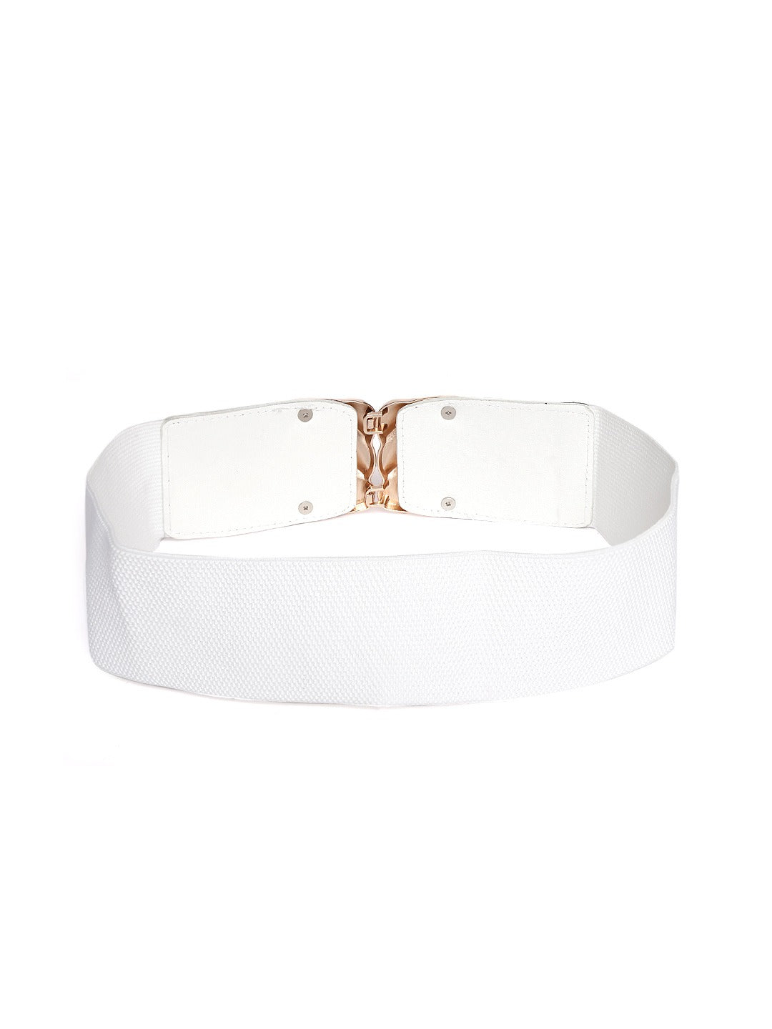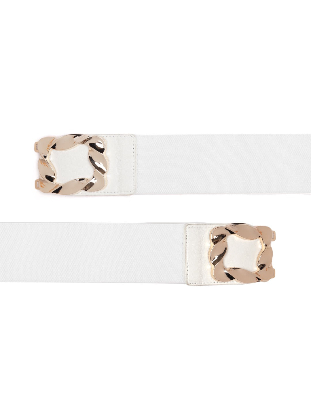 Details are the only thing that ties the overall look together with a fashionable element just like this stylish White Elastic Strap Square Concho Belt from Berrylush. Elegantly designed with inter-lock closure that offers an easy and secure fastening feature with the proper silhouette. This belt enables you to steal attention towards you as its golden metallic square concho design adds a majestic and attractive sheen to your outfit. That's not all, the wide elastic waistband makes your look appear more sophisticated and elegant with a modish style. Complete your stylish look by wearing this concho belt with a flared animal print dress, a pair of high heels, and a cute side bag.
