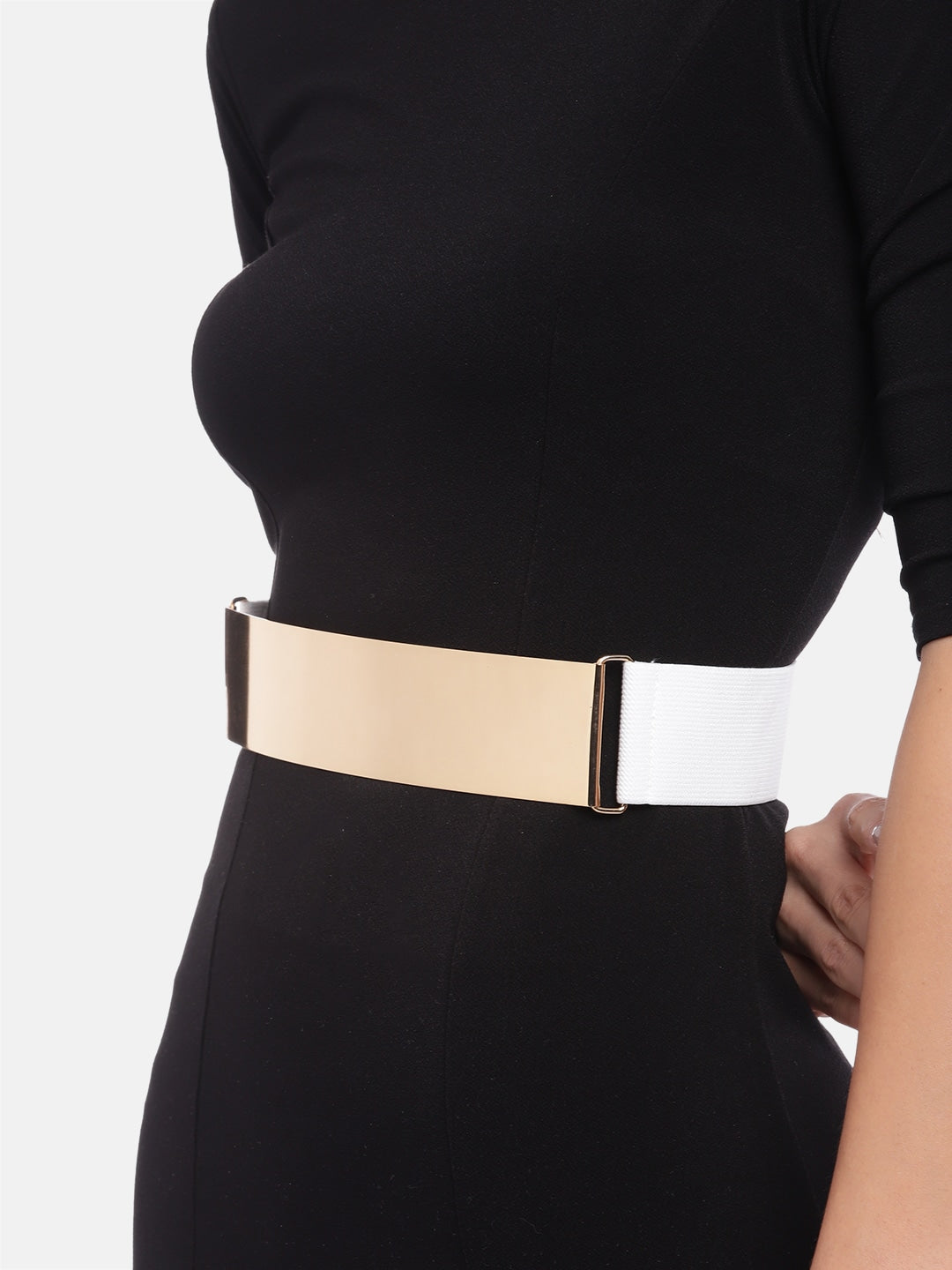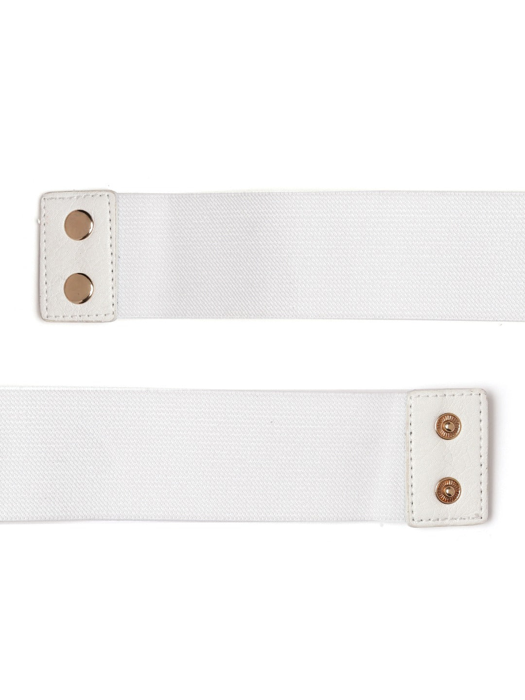 Berrylush Women White Elastic Strap Golden Buckle Belt