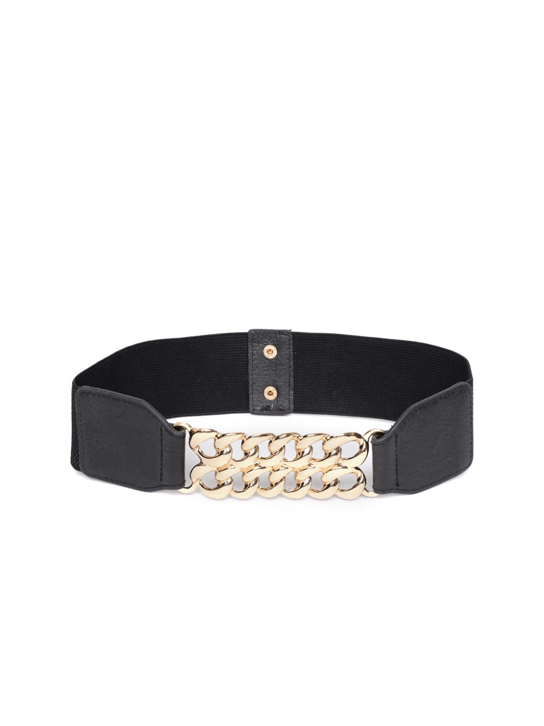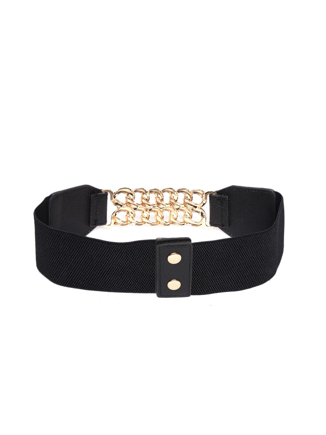 Highlight your beautiful waistline and add a hint of classiness to your wardrobe with this captivating Black Elastic Strap Two Chain Buckle Belt from Berrylush. This belt will surely enhance the style of your boring outfits with its astonishing two-chain design on the front side which inject an ornamental sheen. Featuring a slim black elastic strap that makes this belt appear sophisticated and an appropriate belt for accompanying your jeans as well as trousers. That's not all, this belt is easy to clean as its needs to be only wiped with a piece of dry cloth. Complete your look by wearing this chain belt with a bodycon dress to get a boho-chic appeal.