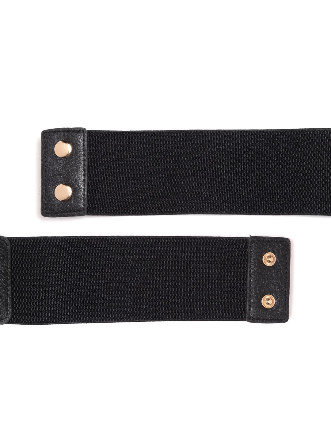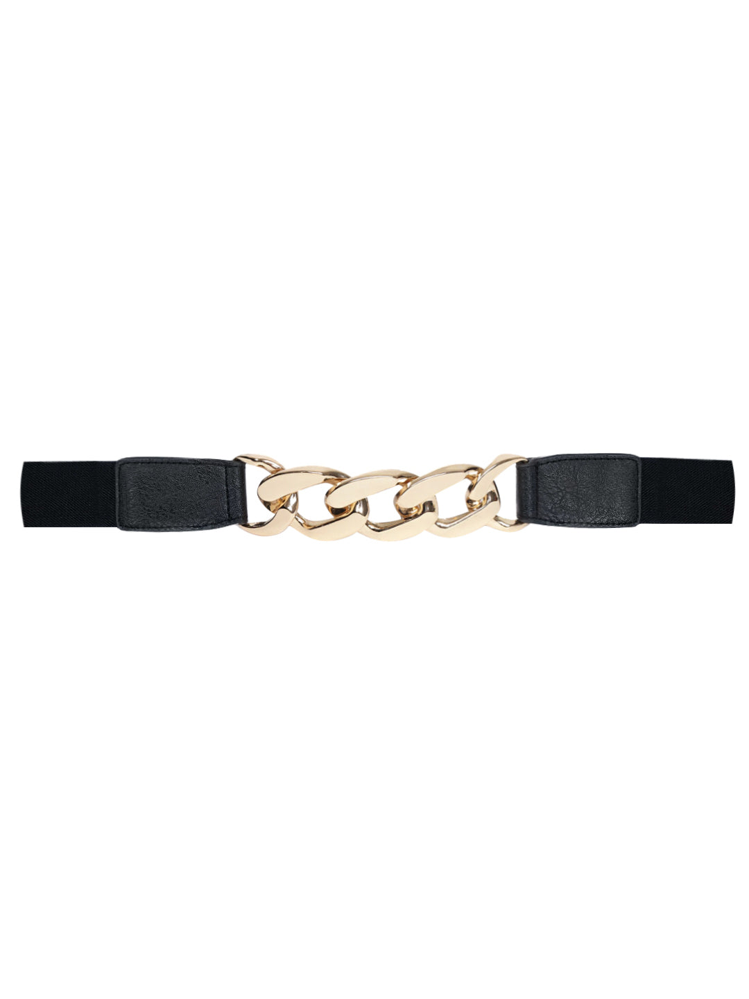 Berrylush Women Black Elastic Strap Two Chain Buckle Belt