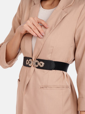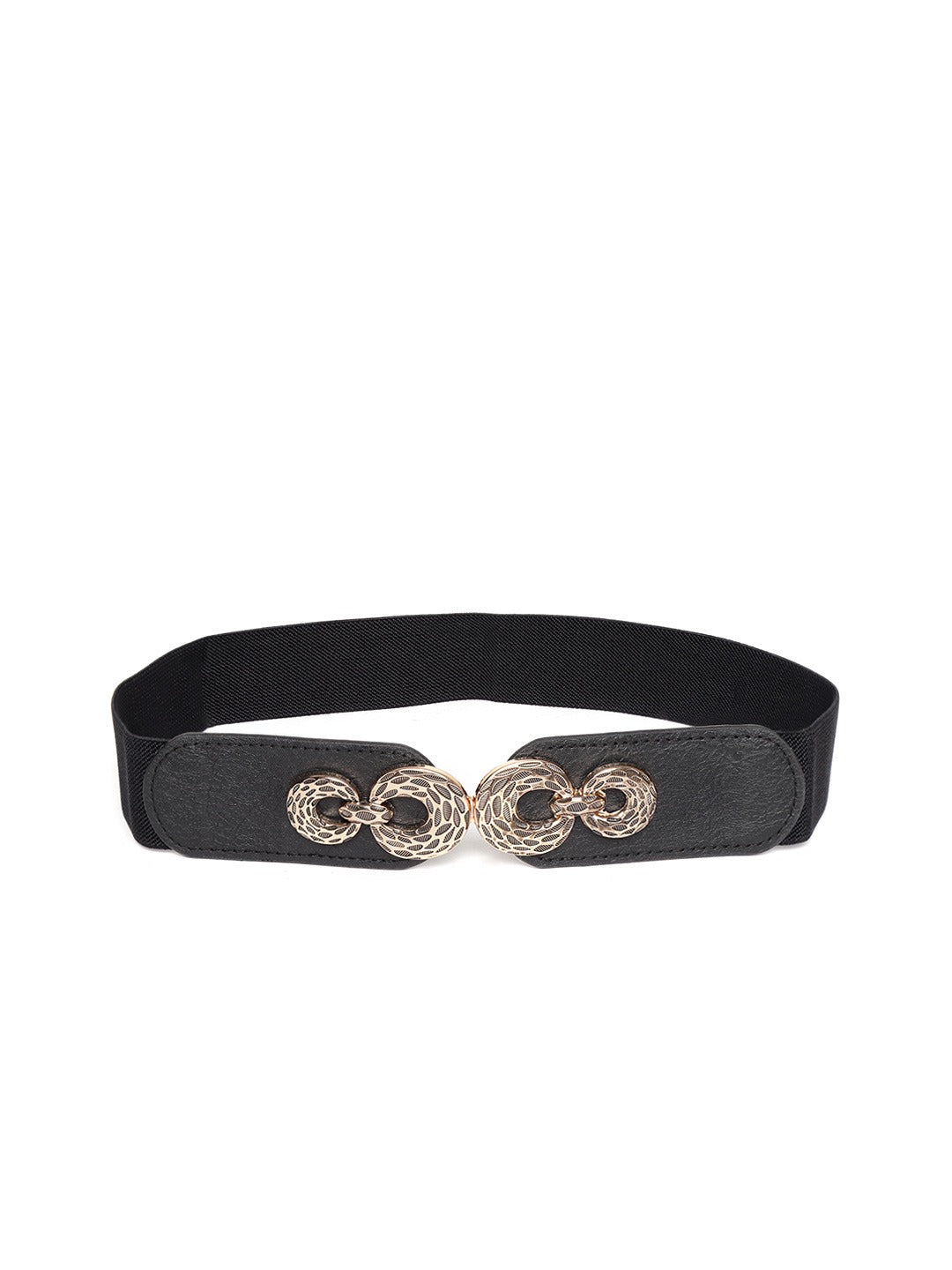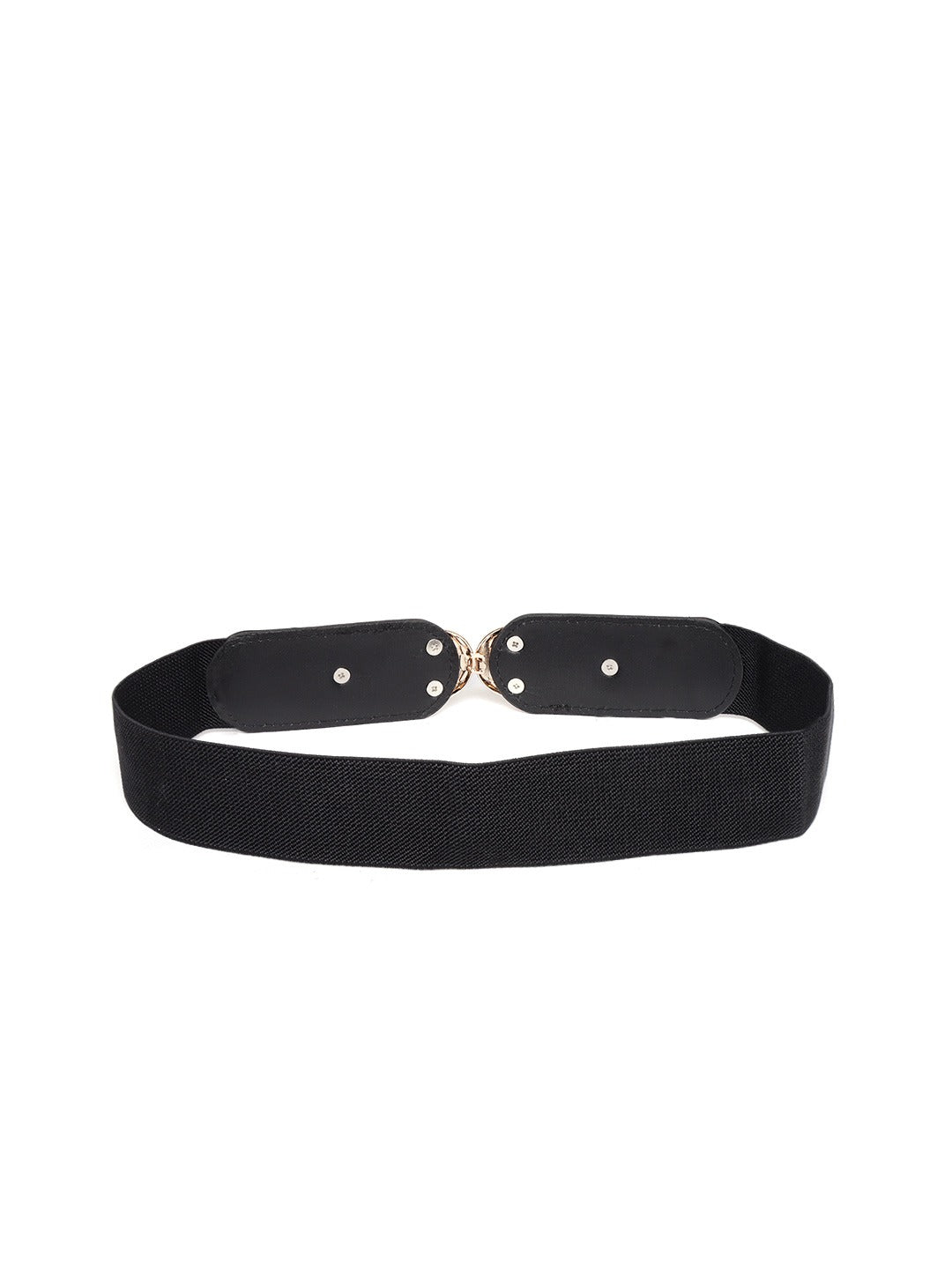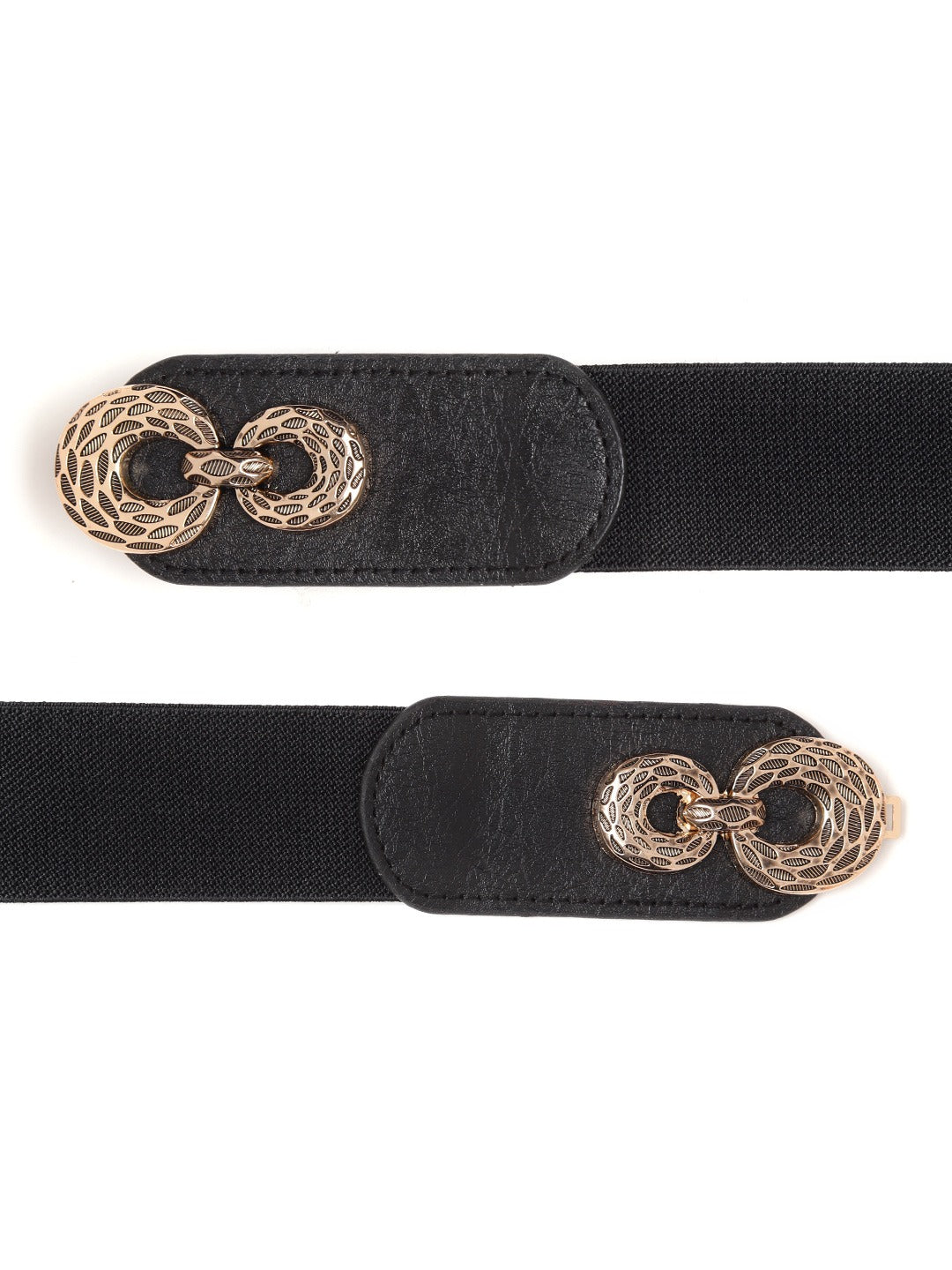 Berrylush Women Black Elastic Strap Golden Double Buckle Belt
