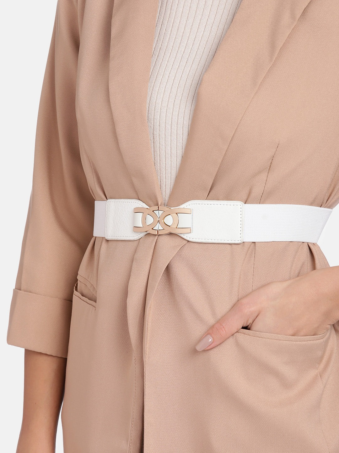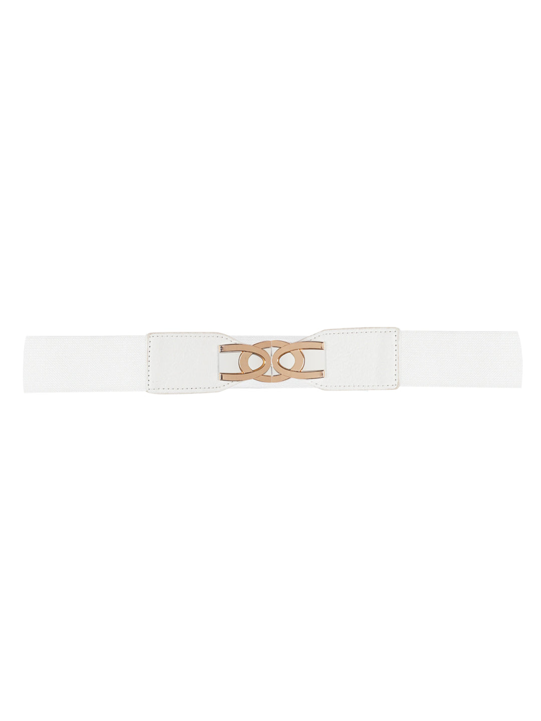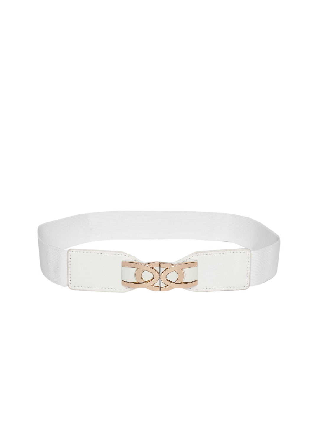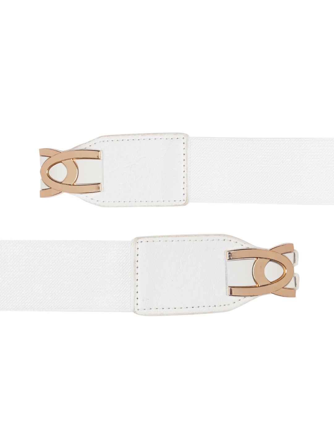 Berrylush Women White Elastic Strap Golden Buckle Belt