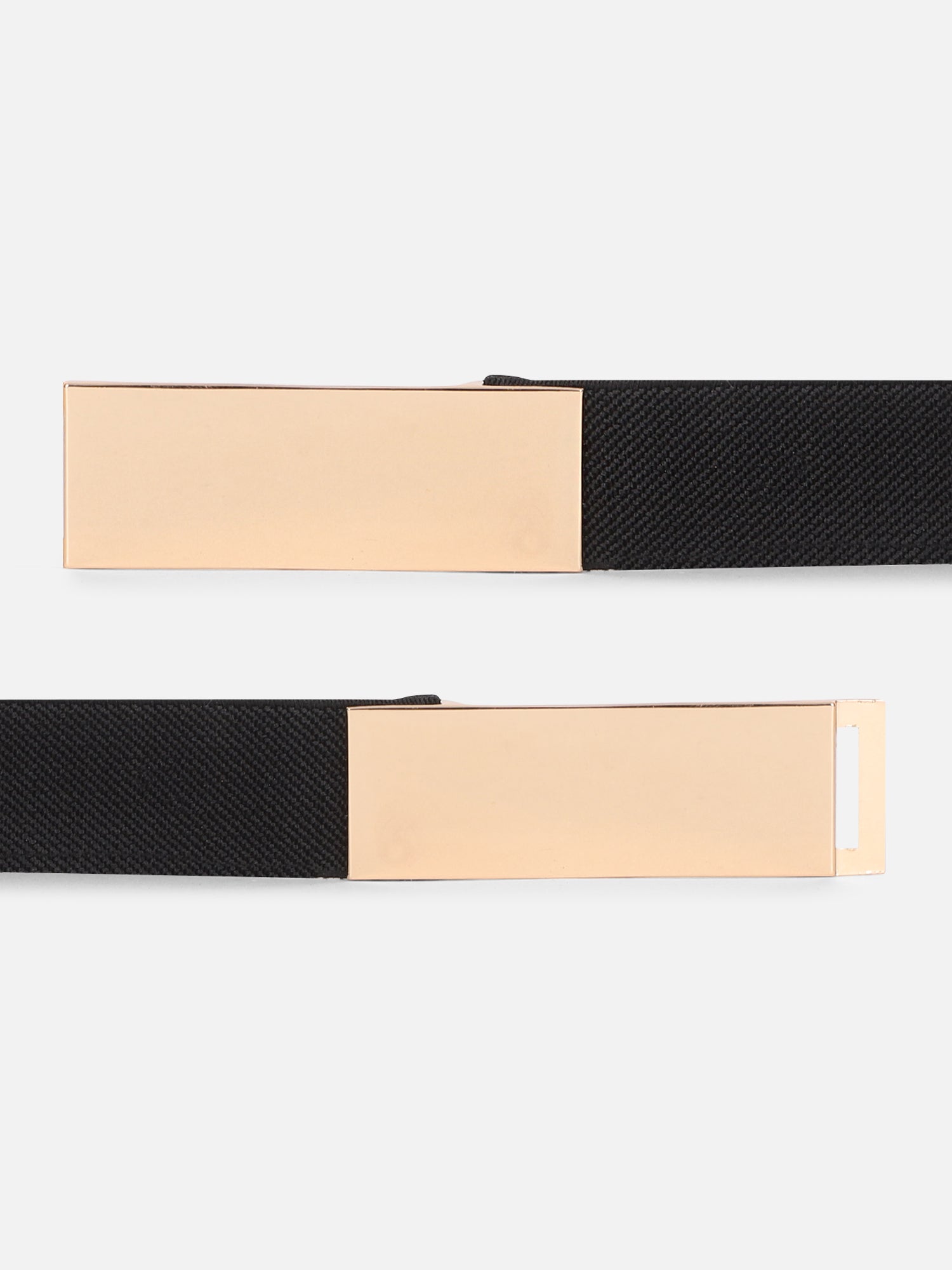 Berrylush Women Solid Black Golden Metallic Interlock Nylon Casual Regular Belt