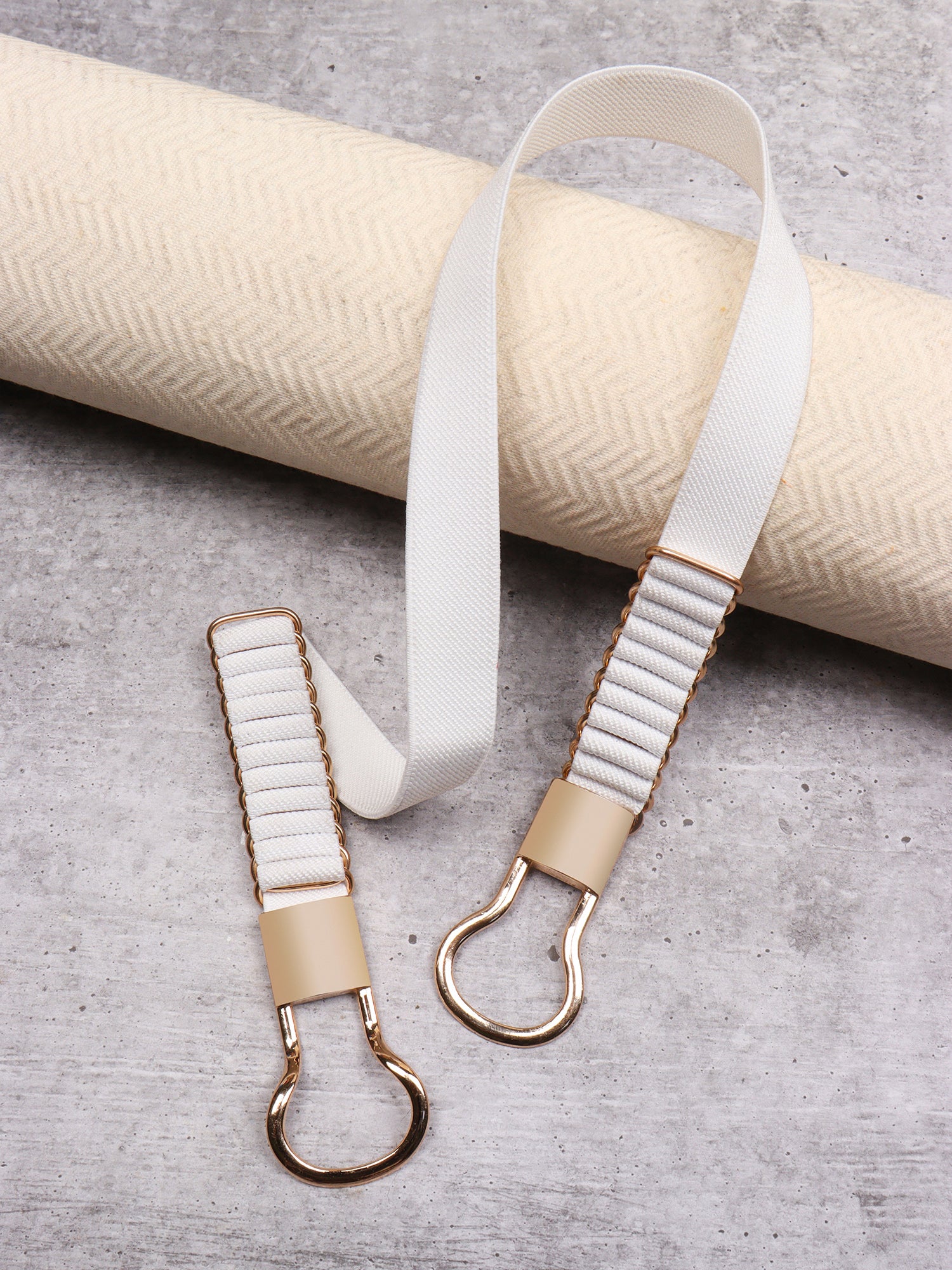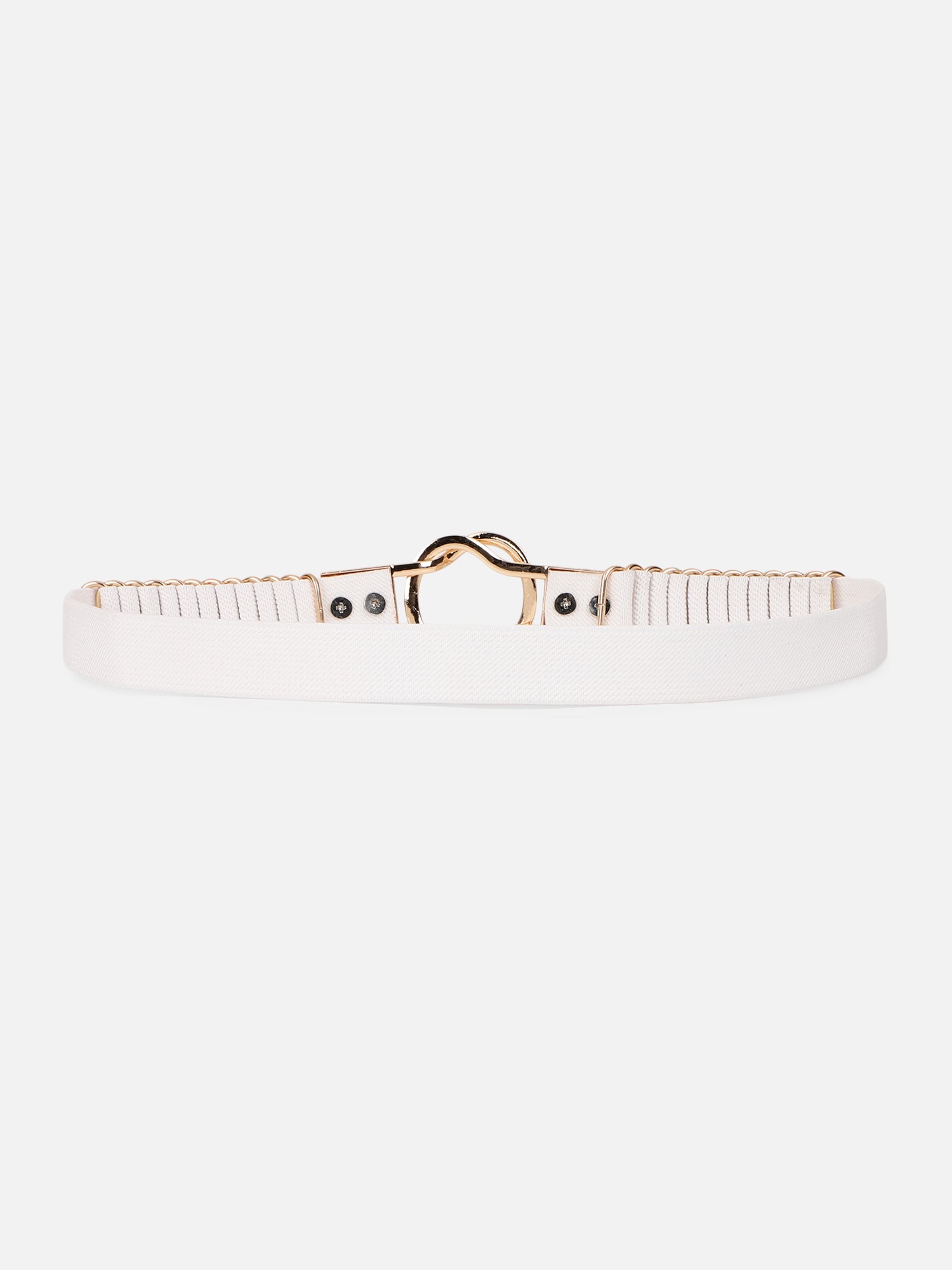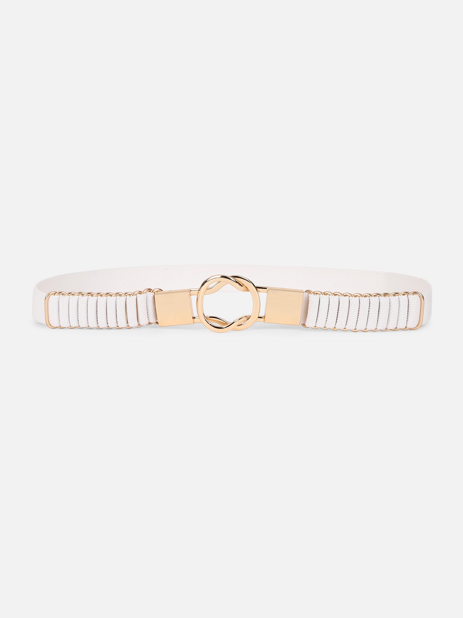 Be a part of modern sophistication while keeping your fashion game on point with this mesmerizing Solid White Golden Embellished Regular Belt from the latest accessories collection introduced by Berrylush. Showcasing interlock closure that lends this belt a smooth and secure fastening set-up to consume minimum time and effort. Detailed with a solid pattern that gives this belt a dash of subtle elegance and an evergreen style statement for a fabulous appearance. The stretchable strap offers this belt excellent stability and flexibility toward body movements and shape. You can pair this belt with your favourite maxi dress and matching sandals to get a charismatic look.