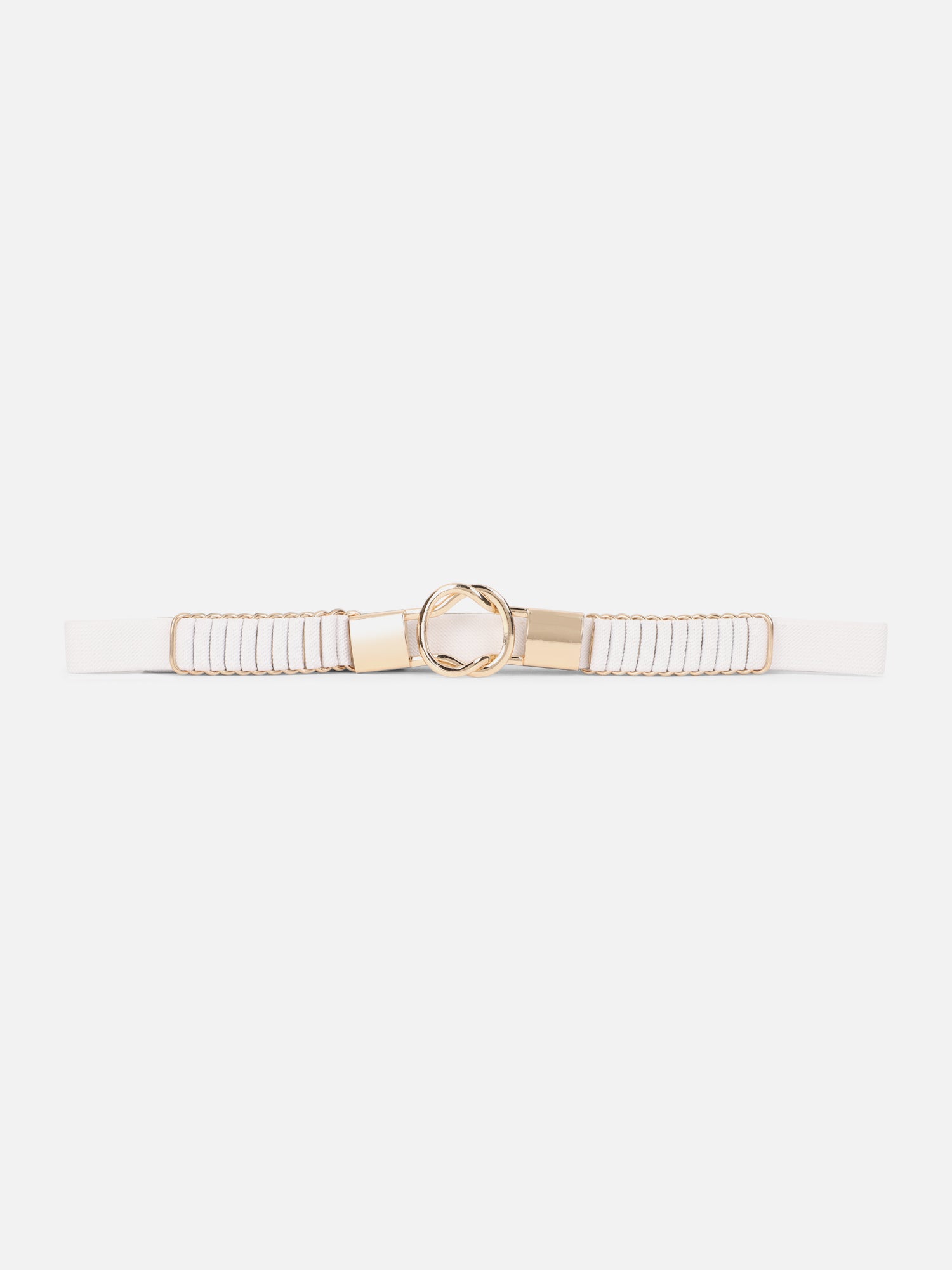 Berrylush Women Solid White Golden Embellished Nylon Interlock Regular Slim Belt