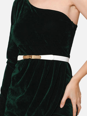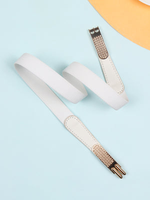 Berrylush Women Solid White Golden Embellished PU Nylon Interlock Regular Slim Belt