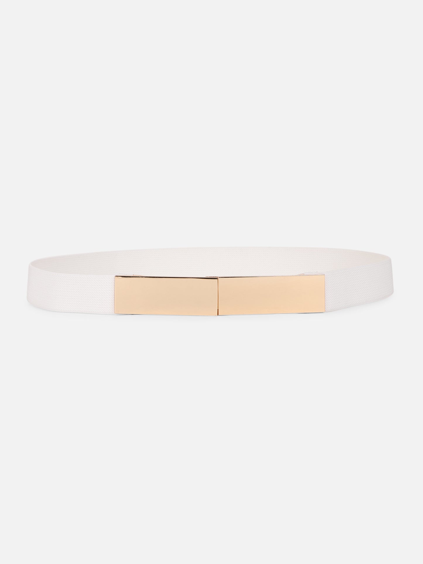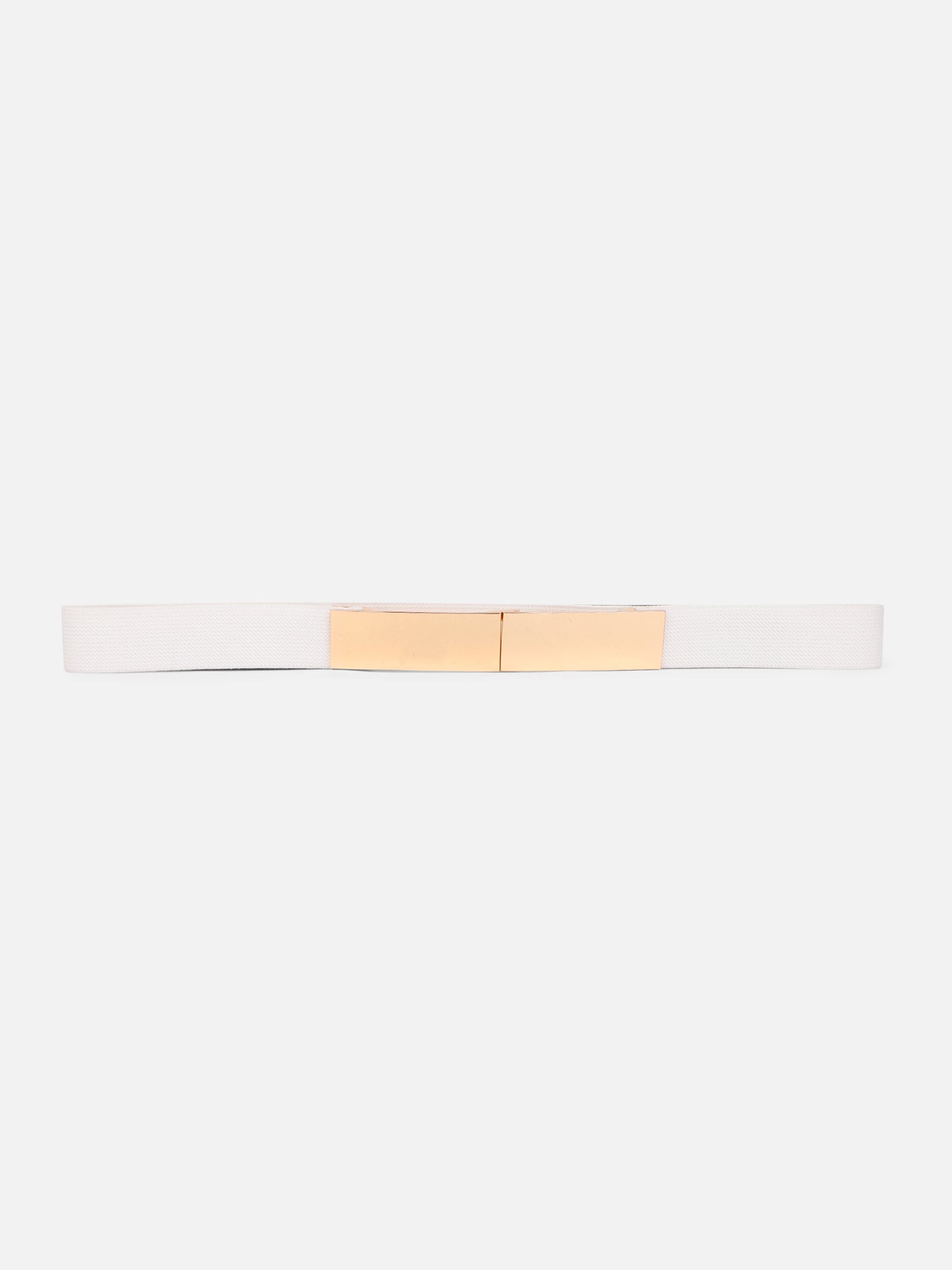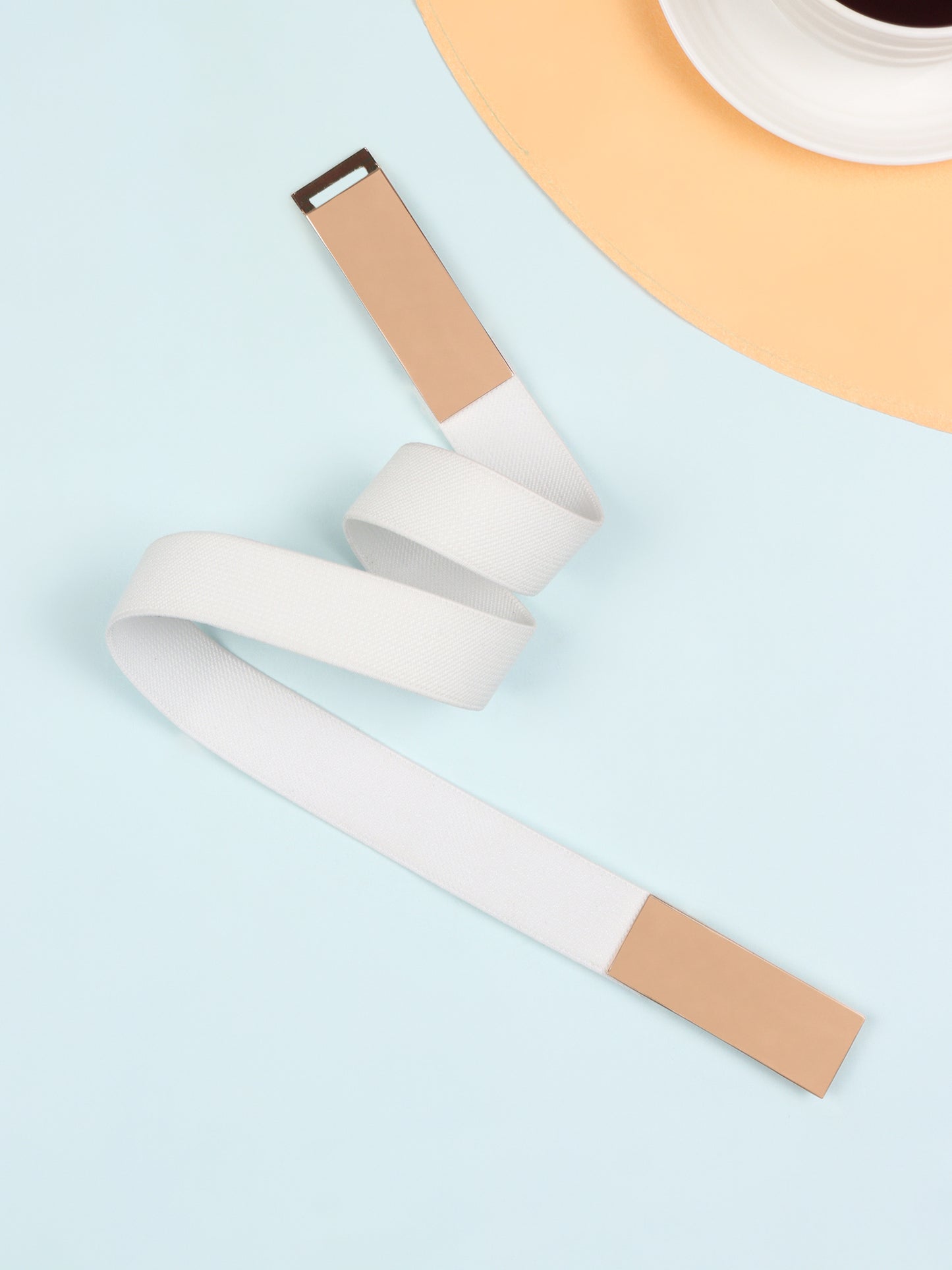 Berrylush Women Solid White Golden Embellished Nylon Interlock Regular Slim Belt
