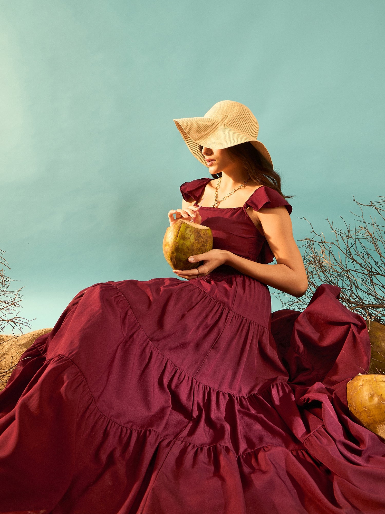 - The maroon solid pattern of the co-ord set reflects your passionate personality