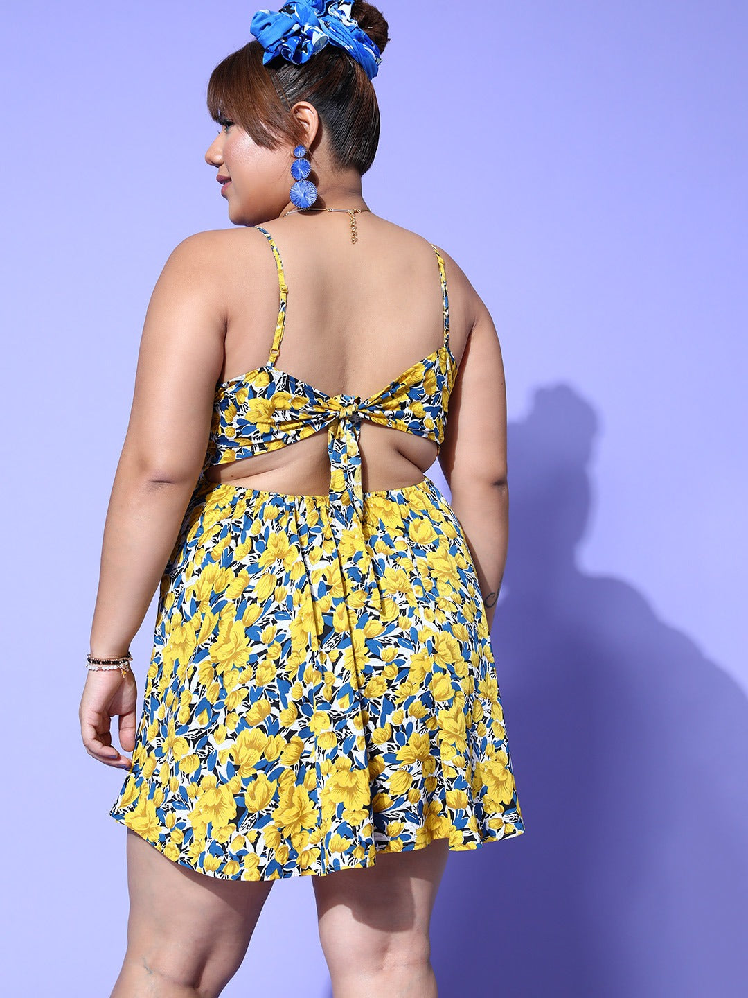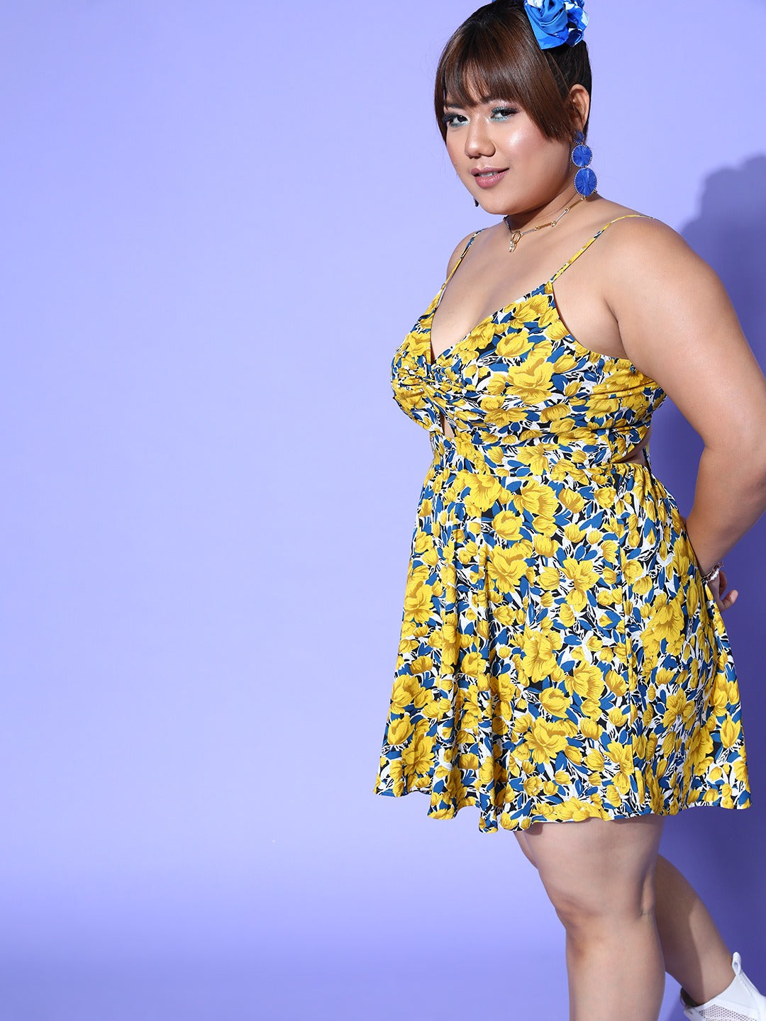 Berrylush Curve Women Yellow Floral Vacay Attire