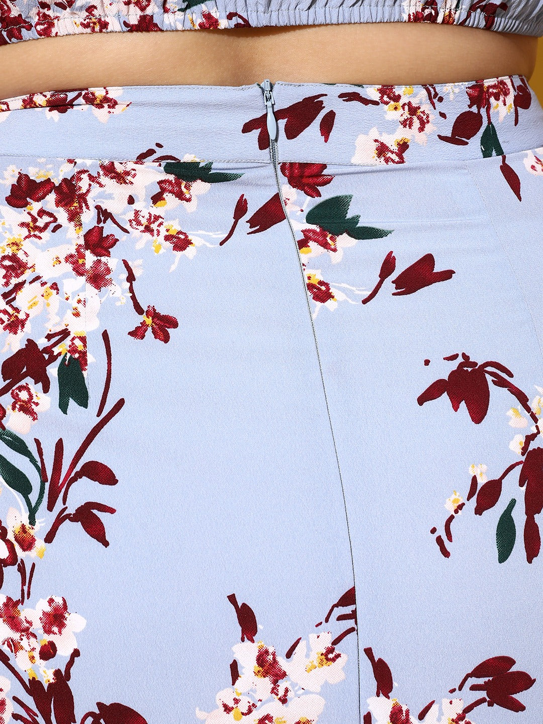• Blue and maroon floral print gives this co-ord set a refreshing and chic look