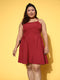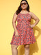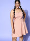 Berrylush Women Plus Size Solid Pink Square Neck Tie-Up Caged Back Crepe Fit & Flare Mini Dress