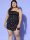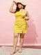 Berrylush Curve Women Mustard Yellow & White Floral Printed Square Neck Sleeveless Crepe Straight Hem A-Line Empire Mini Dress