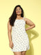 Introducing the Berrylush Curve Mustard Yellow & White Floral Printed A-Line Empire Mini Dress. Perfect for any party occasion, this dress features a charming square neckline and sleeveless design, ideal for showcasing your elegance. Crafted from luxurious crepe fabric, its woven texture offers unbeatable comfort while ensuring the garment remains opaque. Adorned with an enchanting floral print in vibrant mustard yellow and crisp white hues, it radiates cheerful summer vibes. The stylish straight hemline complements the flattering empire waist tied neatly with a chic tie-up accent at the back—secured effortlessly by a discreet zipper closure. Embrace your feminine charm in this exquisitely playful creation!