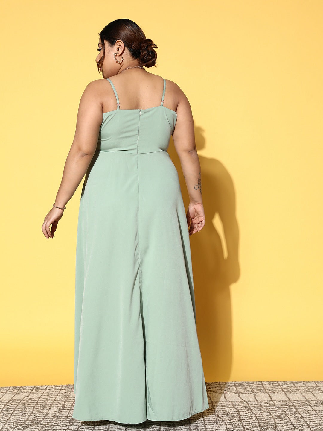 Make some space within your casual closet for undeniable gorgeousness and trendy signature style by opting for this glamorous Solid Green Sleeveless Crepe Flared Maxi Dress from Berrylush. Elegantly designed by shoulder straps that offer this dress supportive structure and sartorial perfection. The flared hemline lends this dress a curve-hugging silhouette with beautiful flair to outshine your curves gracefully. Comes with concealed zip closure at the back, giving this dress a dash of practicality for the easy-to-style feature. Wear this maxi dress with a pair of high-heels, minimalistic silver jewellery, and a matching clutch to create a fashion-flattering look.